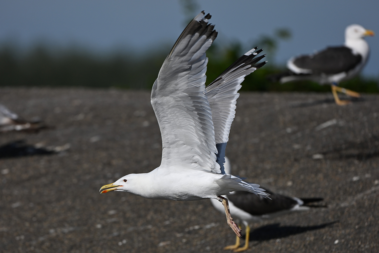 below: Caspian Gull cachinnans 1.M 4CY, July 09 2025, colony Lelystad, the Netherlands. Picture: Thijs Horst.