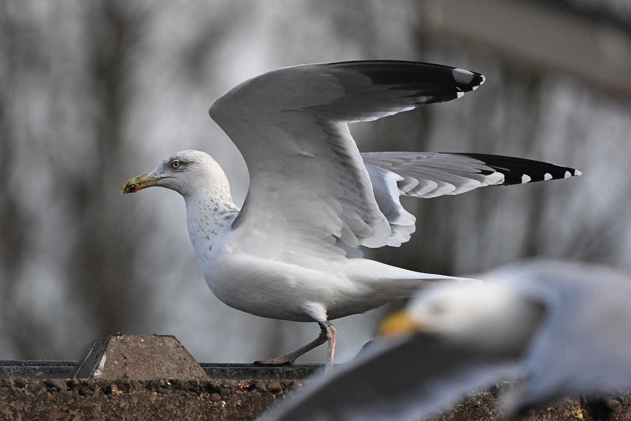 below: Yellow-legged Gull michahellis hybrid 7.K 3CY, February 15 2024, Almere, the Netherlands. Picture: Thijs Horst.
