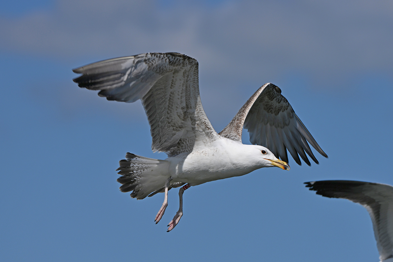 below: Caspian Gull cachinnans 7.W 2CY, March 30 2024, Almere, the Netherlands. Picture: Thijs Horst.