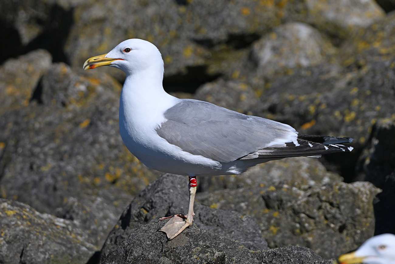 below: Caspian Gull cachinnans 7.Y 3CY, March 29 2025, Ijmuiden - Noordpier, the Netherlands. Picture: Hans Schekkerman.