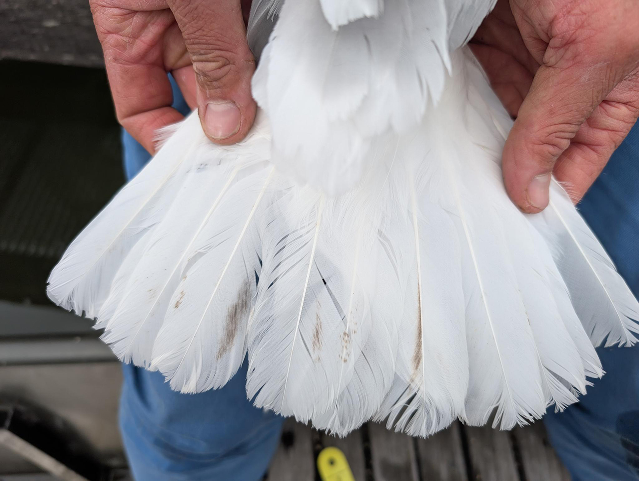 below: Caspian Gull cachinnans F.L 4CY, June 25 2024, colony Lelystad, the Netherlands. Picture: Thijs Horst.