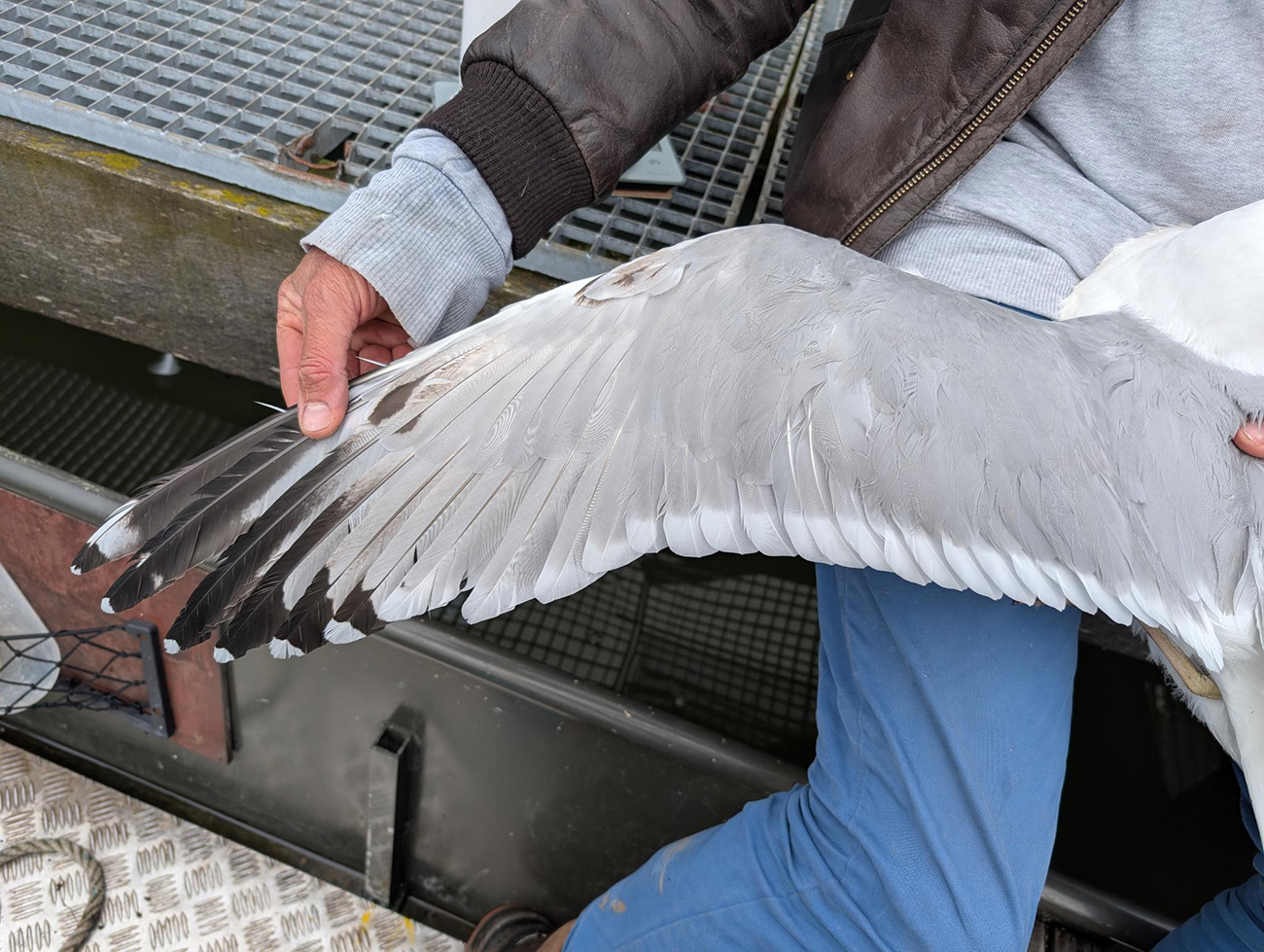 below: Caspian Gull cachinnans F.L 4CY, December 17 2024, Wijhe, the Netherlands. Picture: Daanjan Wisselink.