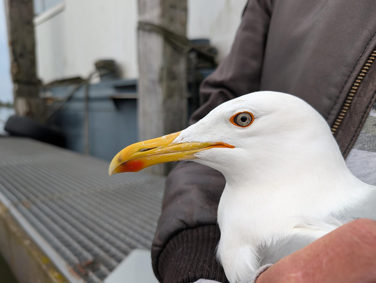 below: Caspian Gull cachinnans F.L 4CY, December 23 2024, Almere - De Vaart, the Netherlands. Picture: Thijs Horst.