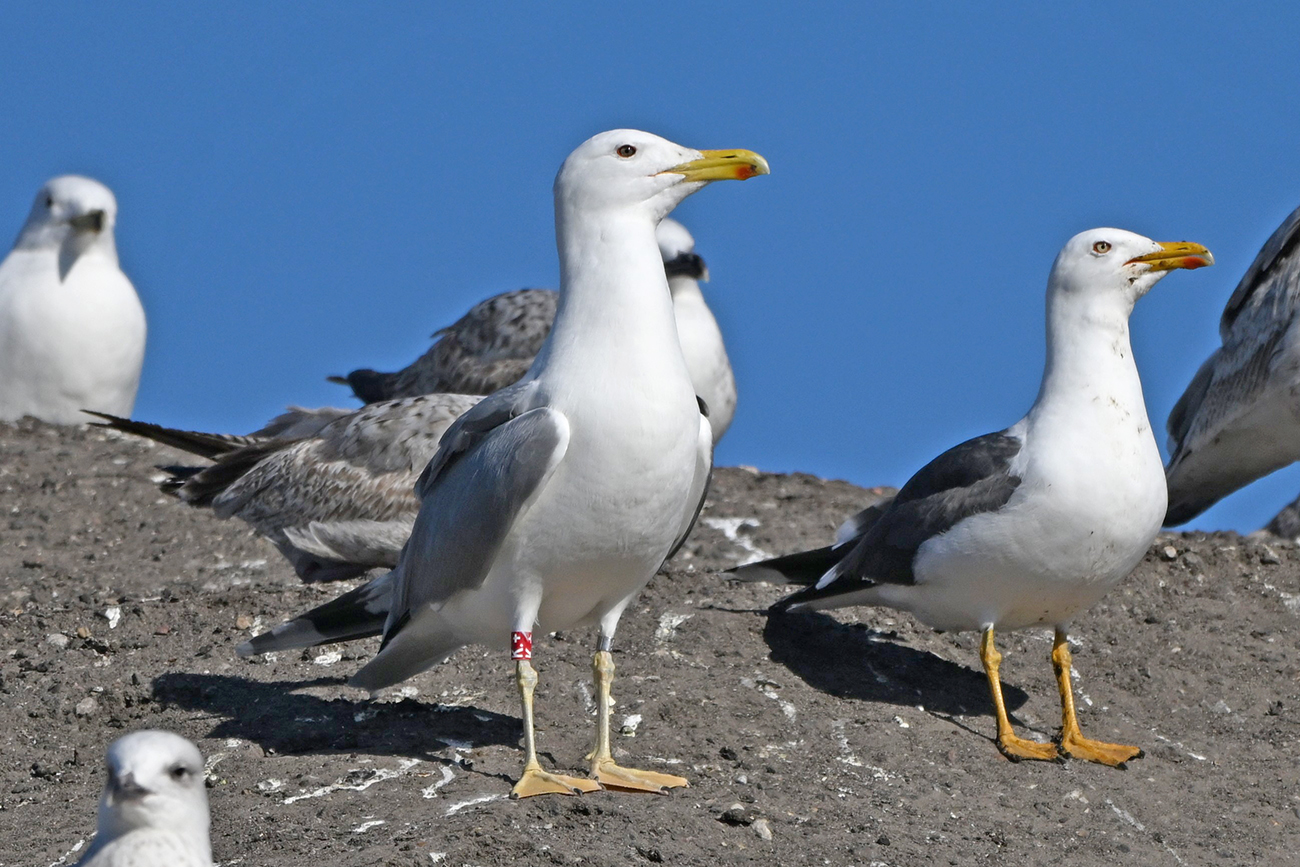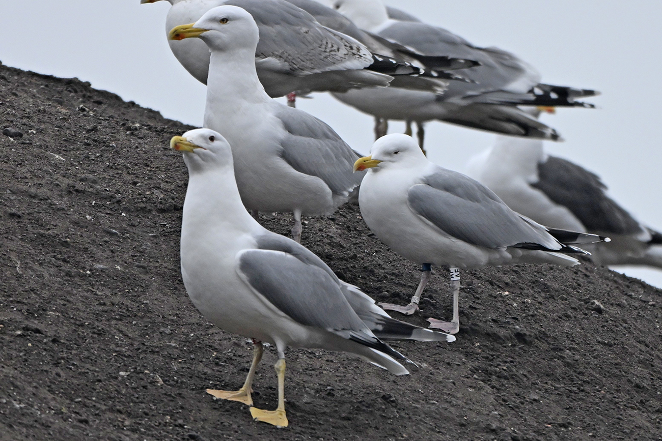 below: Caspian Gull cachinnans K.+ 5CY, July 13 2025, colony De Kreupel, the Netherlands. Picture: Thijs Horst & Mars Muusse.
