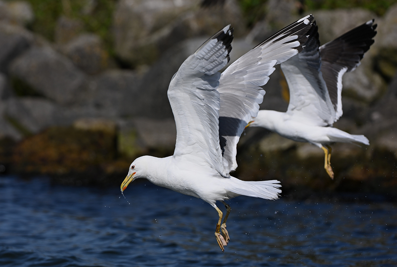 below: Caspian Gull cachinnans X60J 5CY, June 25 2023, Lelystad, the Netherlands. Picture: Thijs Horst & Mars Muusse.