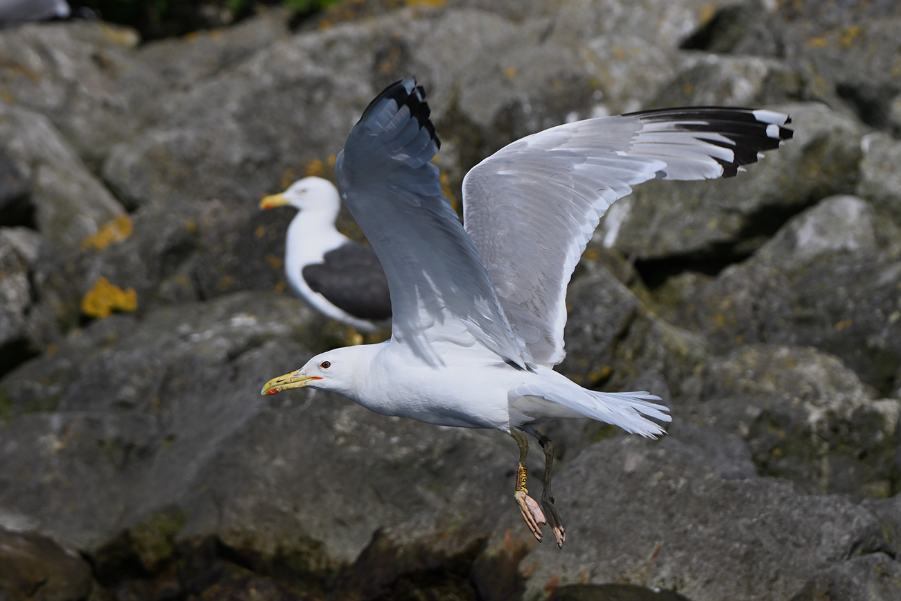 below: Caspian Gull cachinnans X60J 6CY, July 09 2024, colony Lelystad, the Netherlands. Picture: Thijs Horst.
