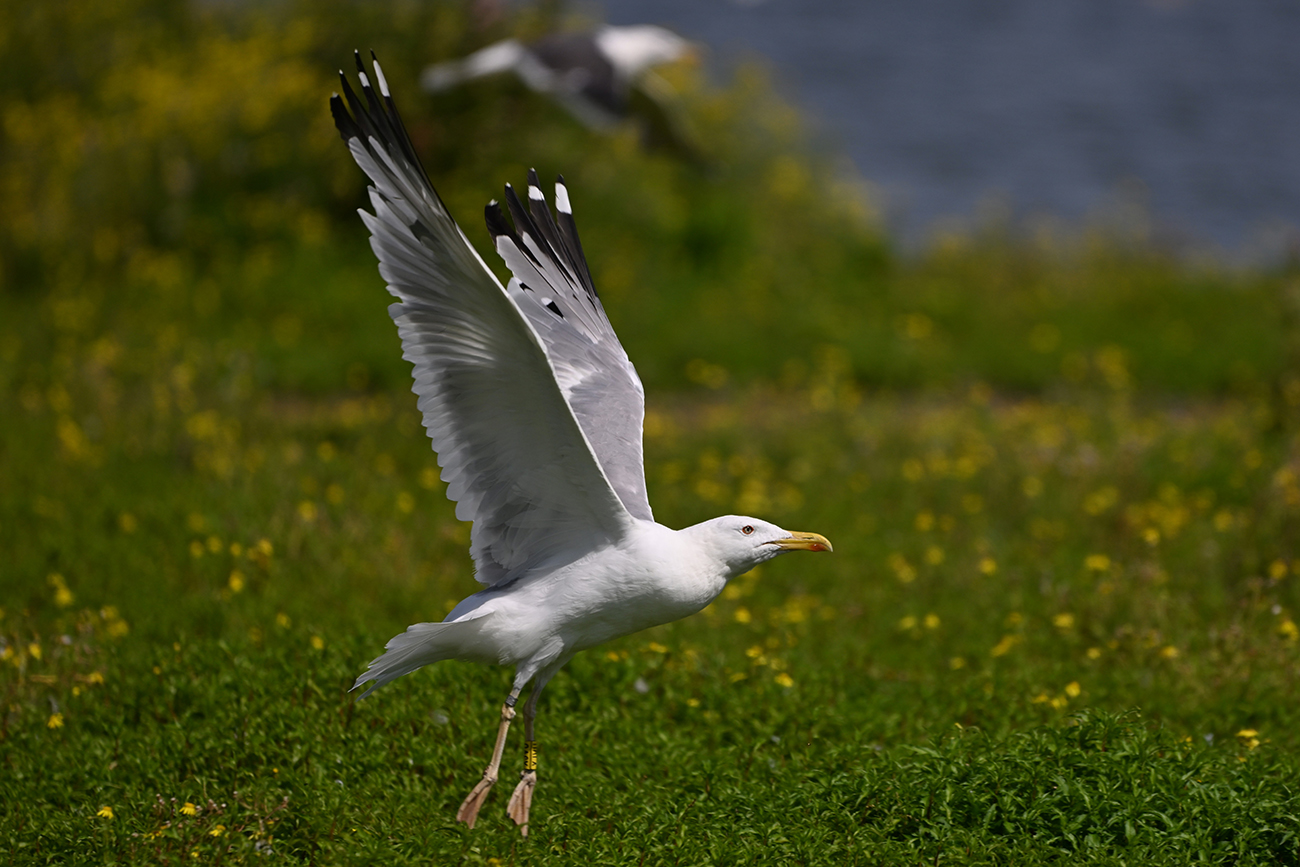 below:Caspian Gull cachinnans XJVU 5CY, July 13 2025, colony De Kreupel, the Netherlands. Picture: Thijs Horst & Mars Muusse.