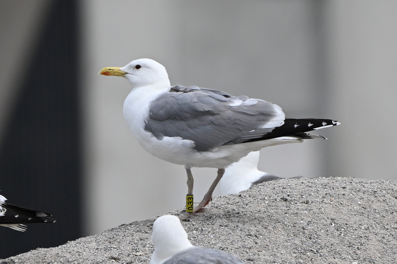 Caspian Gull cachinnans 0.33 adult, July 08 2025, Almere - De Vaart, the Netherlands. Picture: Thijs Horst.Tarsus ring y-0.33 and logger, ringed as breeding adult Larus cachinnans in 2025 at De Kreupel - nest M14, the Netherlands (5247.00 N 513.00 E).