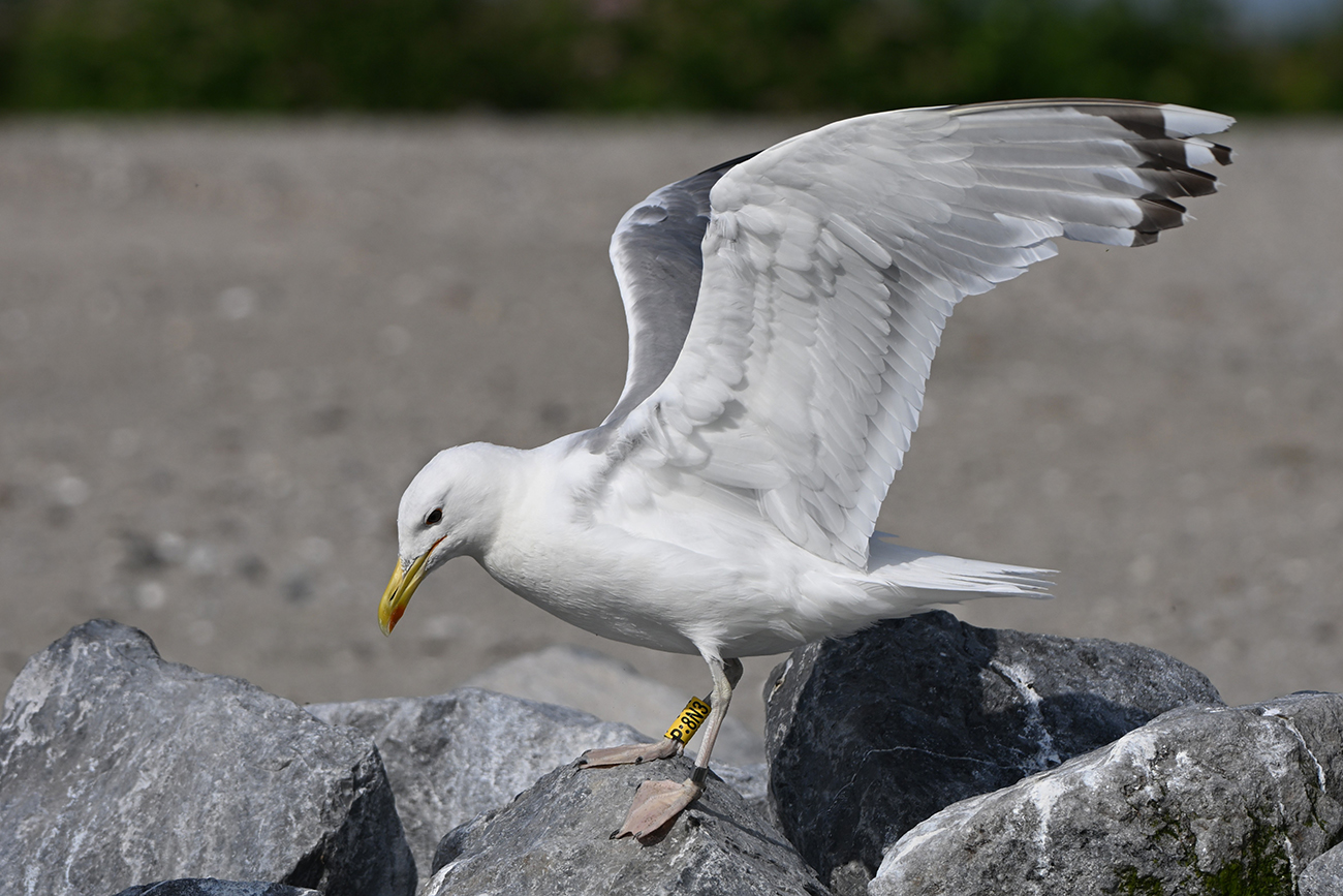 below: Caspian Gull cachinnans P:8N3 5CY, June 23 2023, De Kreupel - F, the Netherlands. Picture: Leon Kelder.