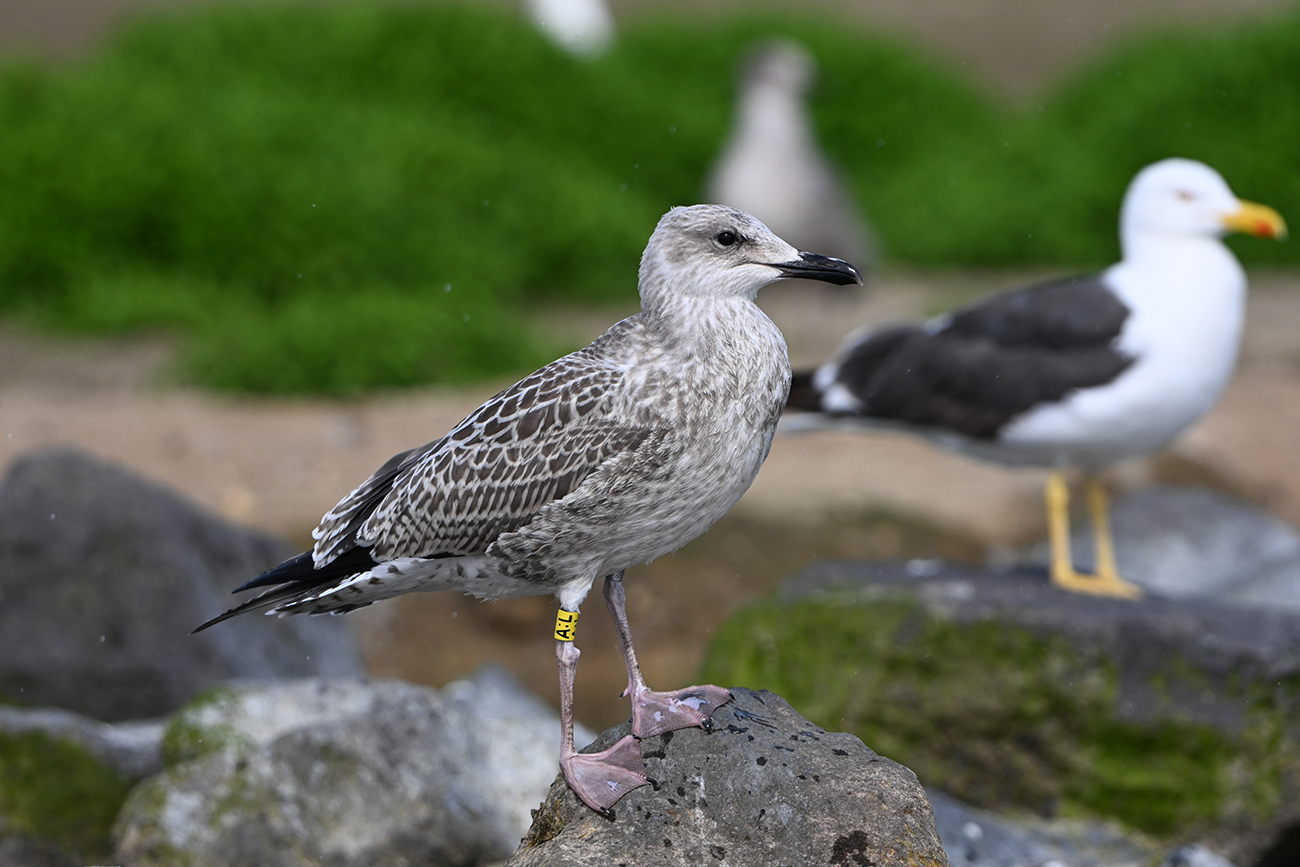below: Caspian Gull cachinnans A:L 1CY, August 11 2025, colony De Kreupel, the Netherlands. Picture: Thijs Horst & Mars Muusse.