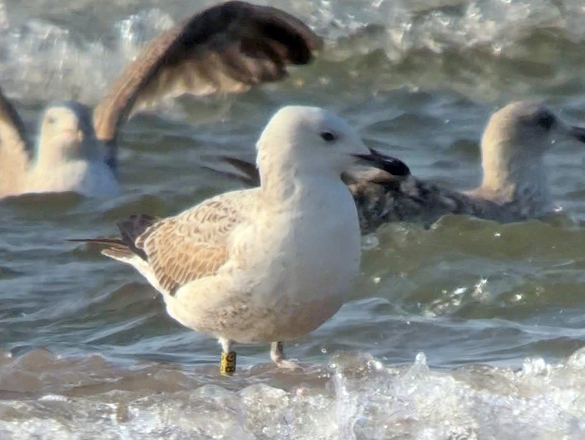 below: Caspian Gull cachinnans B:G 2CY, March 04 2026, Ogmore estuary - Wales, U.K. Picture: Tate Loyd.