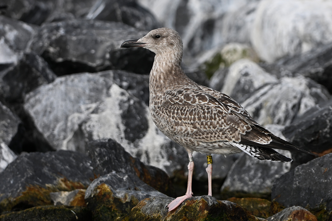 below: Caspian Gull cachinnans hybrid C:U 1CY, November 09 2025, colony De Kreupel, the Netherlands. Picture: Thijs Horst.