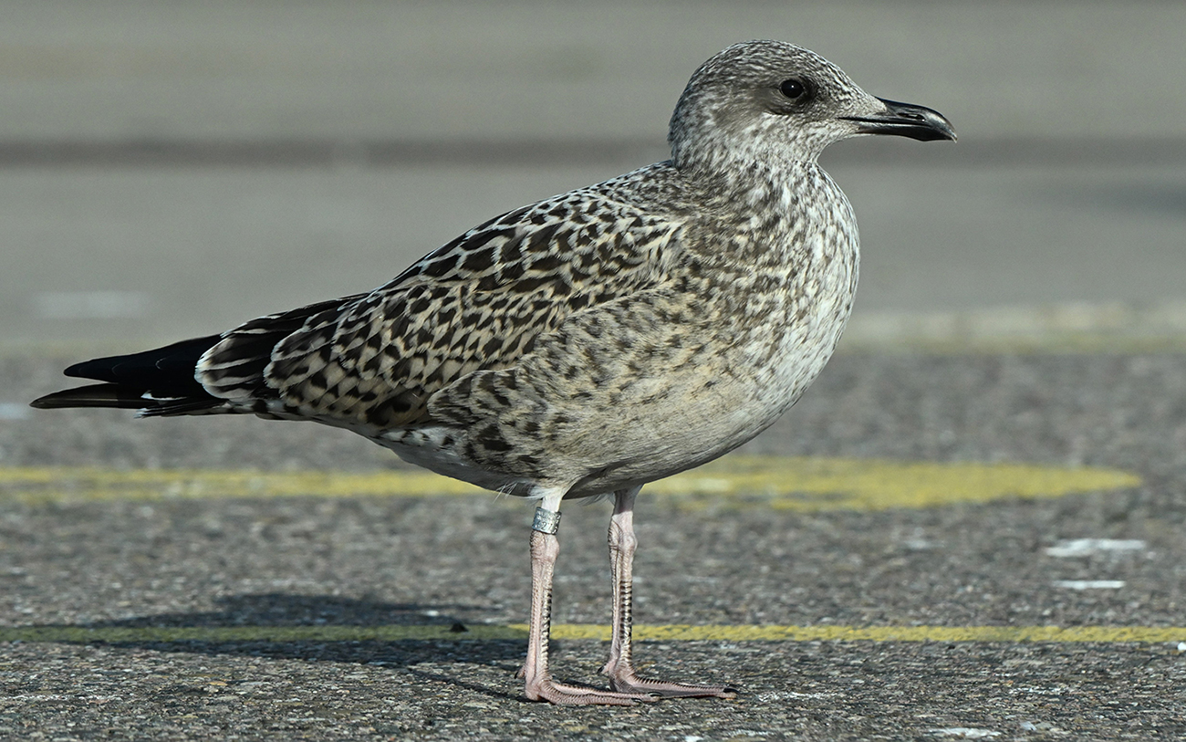below: Lesser Black-backed Gull (graellsii) NLA 5.627.841 1CY, July 14 2024, IJmuiden, the Netherlands. Picture: Thijs Horst.