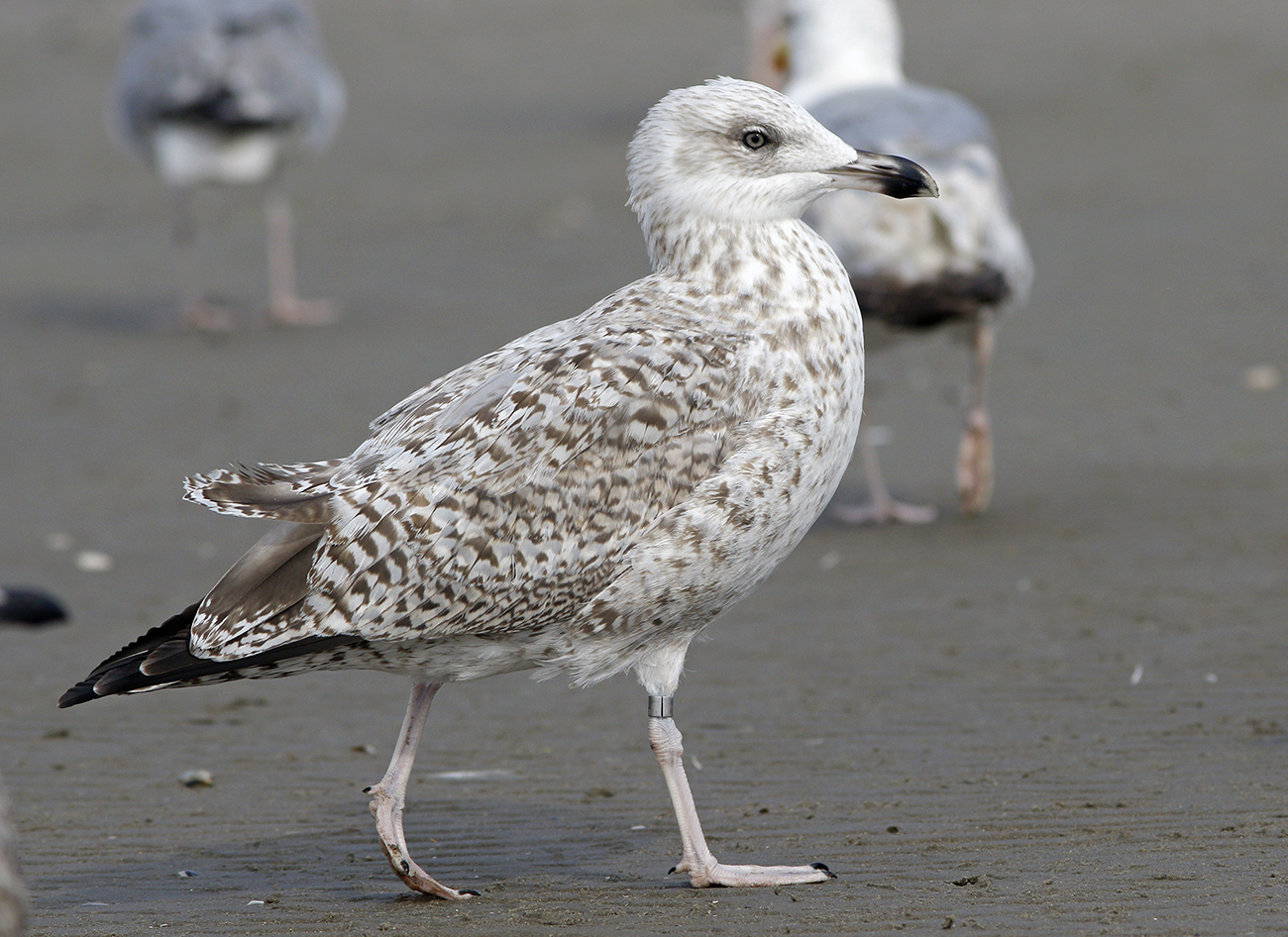 Herring Gull (argenteus) NLA 5.633.260 2CY, August 08 2025, IJmuiden, the Netherlands. Picture: Mars Muusse.Ringed as pullus in season 2024 at Forteiland, IJmuiden. Ringed by Fred Cottaar ringing team. NLA 5633260, parents are YCHL & YCNK. 31-May-2024: mass = 170, wing = 46, H+B = 60,5. below: Herring Gull (argenteus) NLA 5.633.260 2CY, August 08 2025, IJmuiden, the Netherlands. Picture: Mars Muusse.
