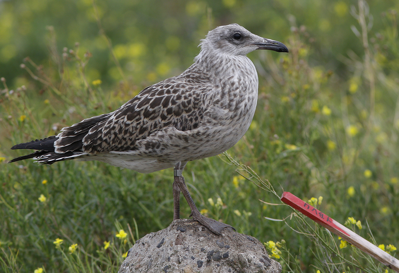 below: Lesser Black-backed Gull (graellsii) NLA 5.643.023 1CY, July 18 2025, IJmuiden, the Netherlands. Picture: Ruud Altenburg.