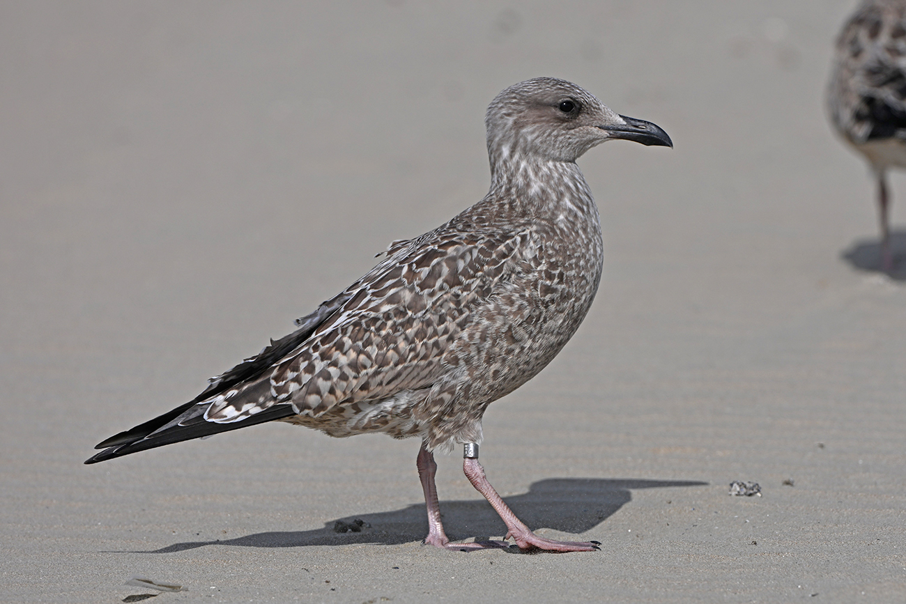 Herring Gull (argenteus) NLA 5.643.042 1CY, 2025, IJmuiden, the Netherlands. Picture: Thijs Horst.Metal ring Arnhem NLA 5.643.042, ringed as pullus on June 03 2025 at colony Forteiland, IJmuiden.