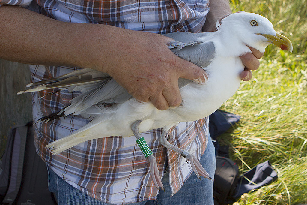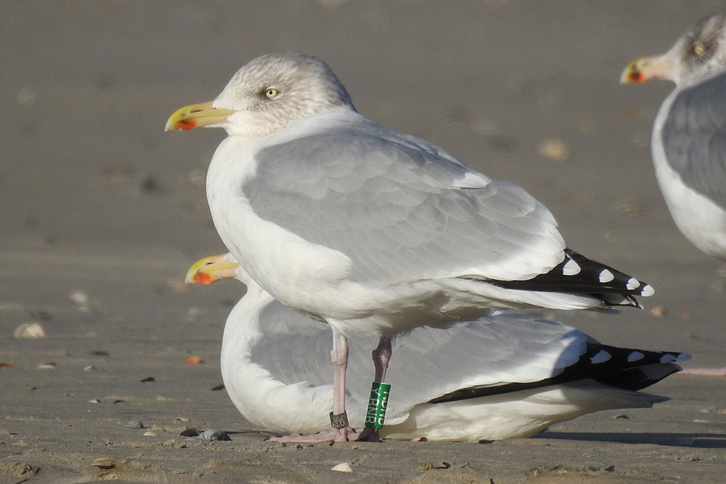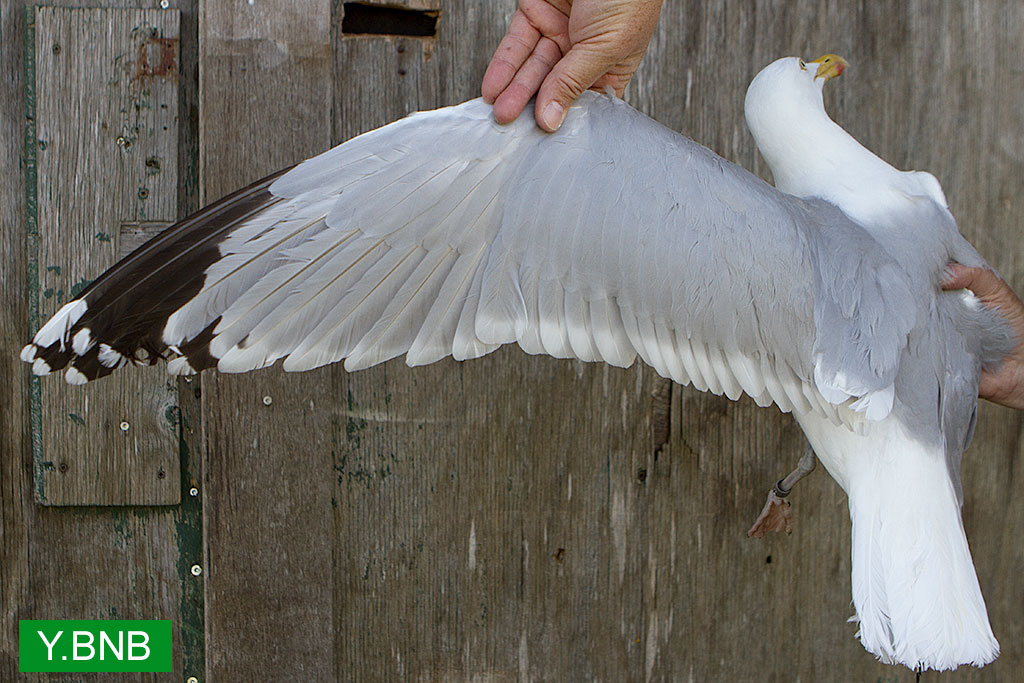 below: Herring Gull (argenteus) Y.BNB >4CY, May 19 2014, IJmuiden, the Netherlands. Picture: IJmuiden Ringing Team.