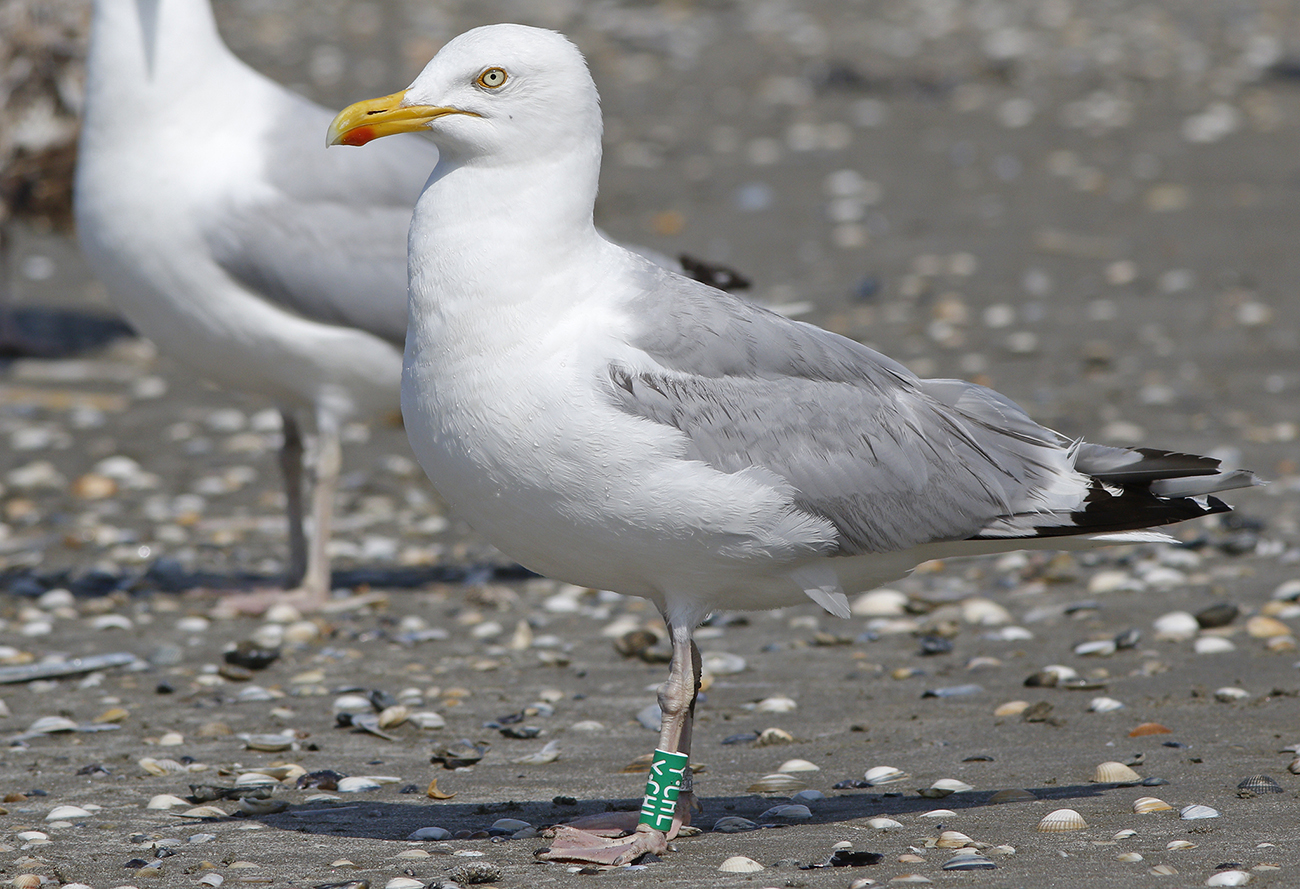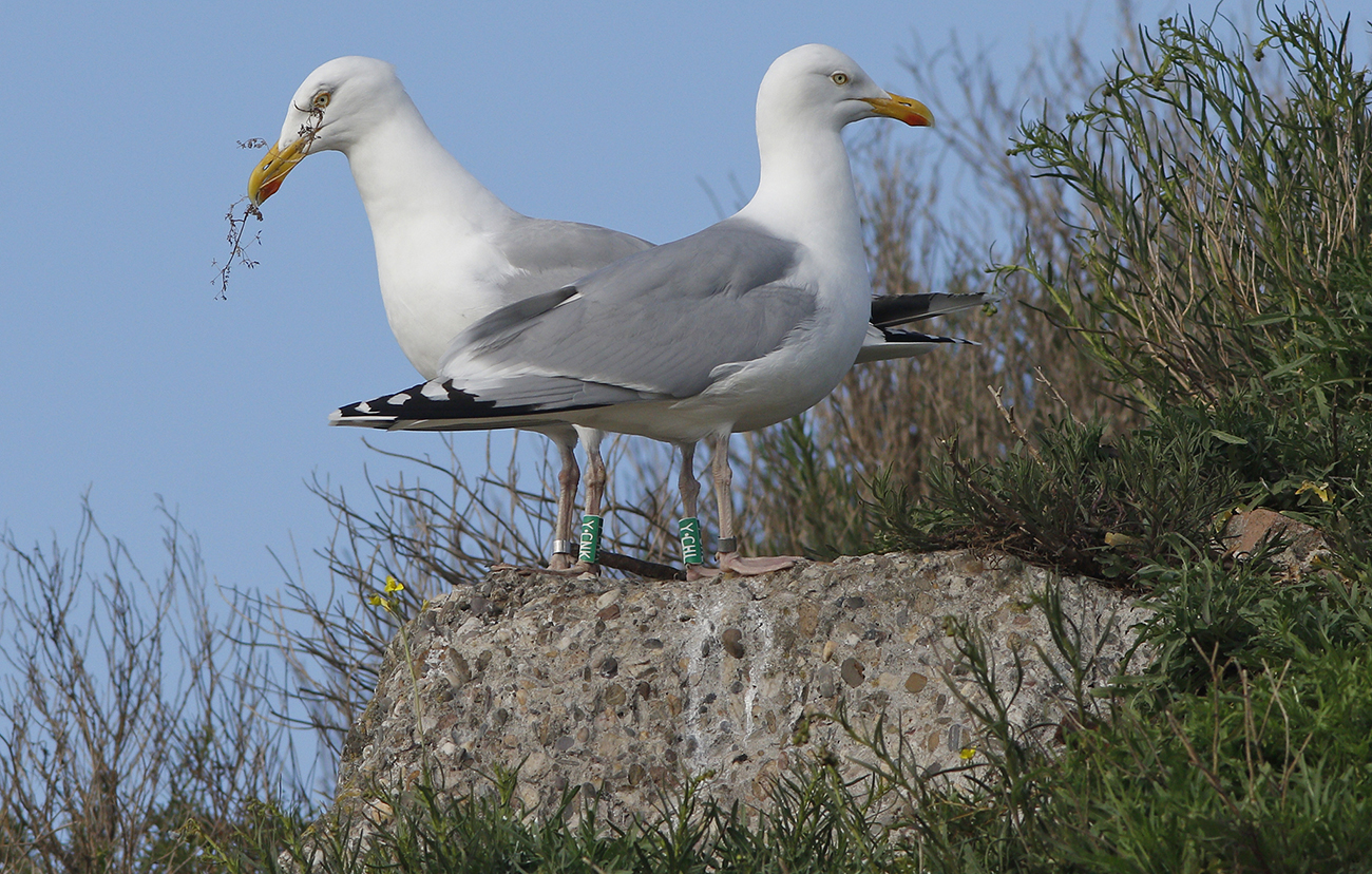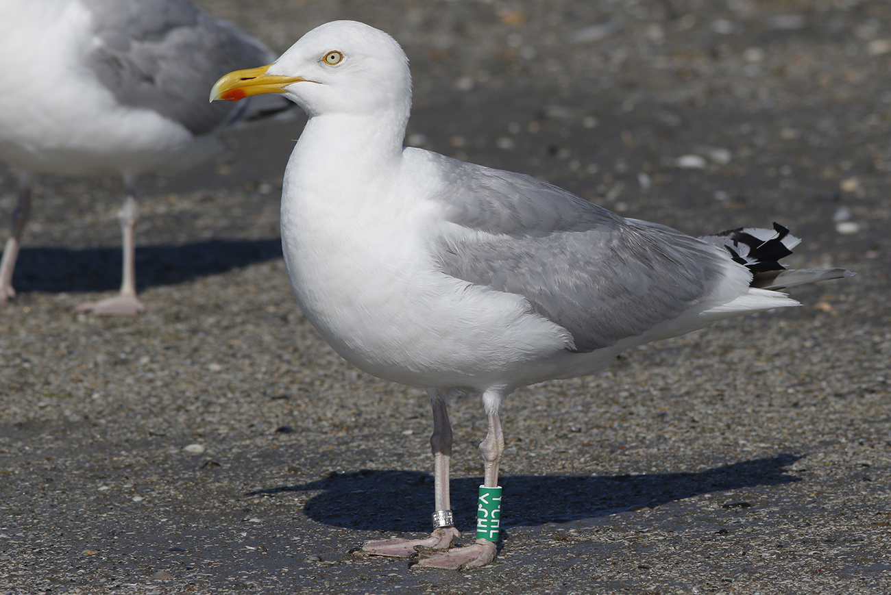 On top of bunker, sitting next to unringed male Herring Gull. |