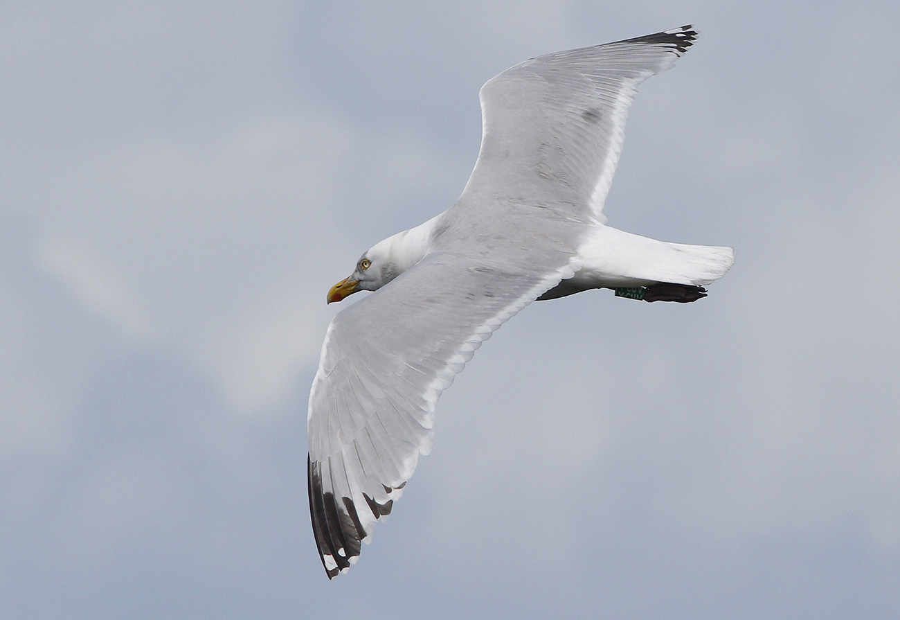 below: Herring Gull (argenteus) Y.CUV >7CY, April 25 2022, IJmuiden, the Netherlands. Picture: Mars Muusse.Still with odd P7 pattern in left wing.