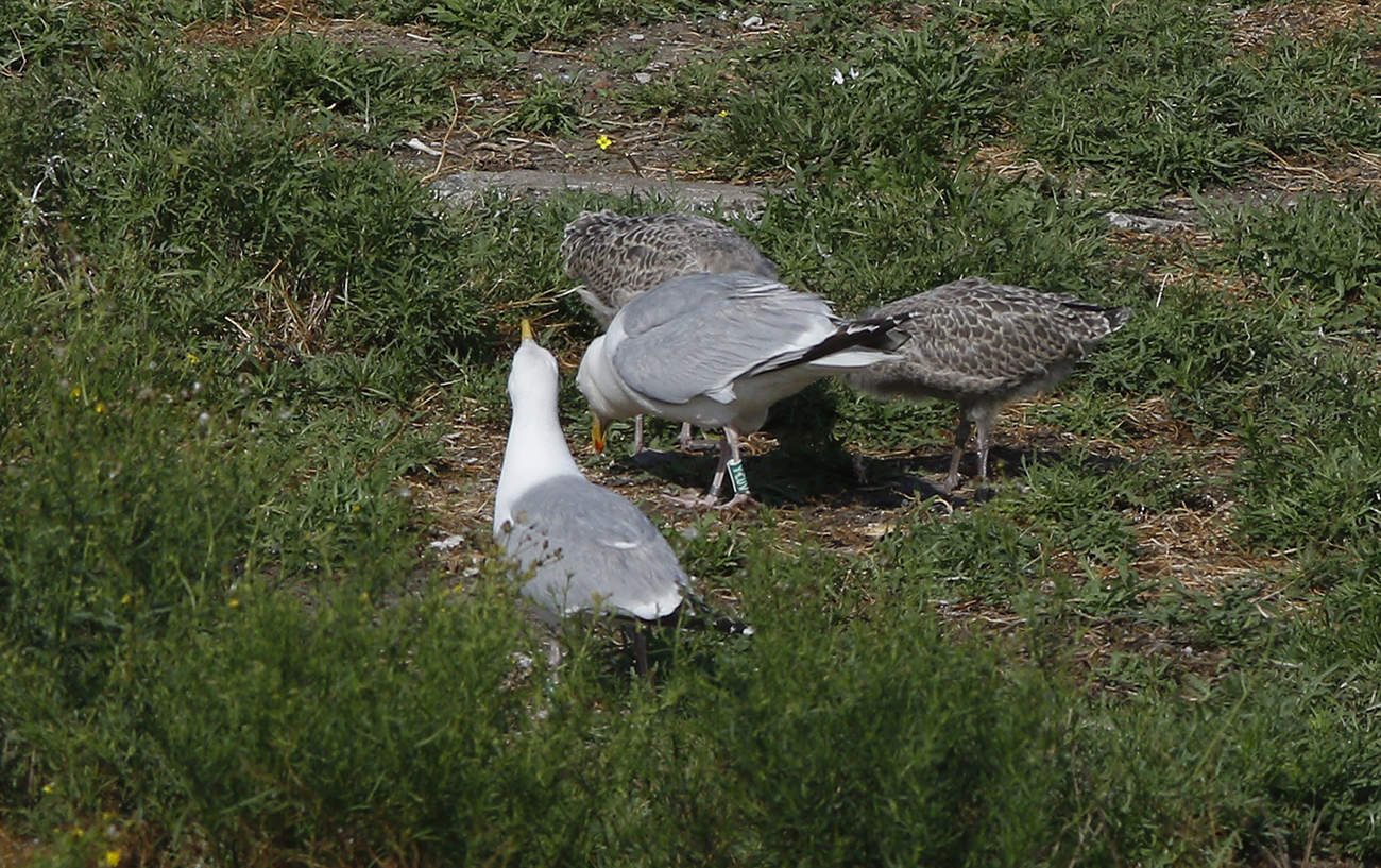 below: Herring Gull (argenteus) Y.CUV >8CY, July 03 2023, IJmuiden, the Netherlands. Picture: Mars Muusse.