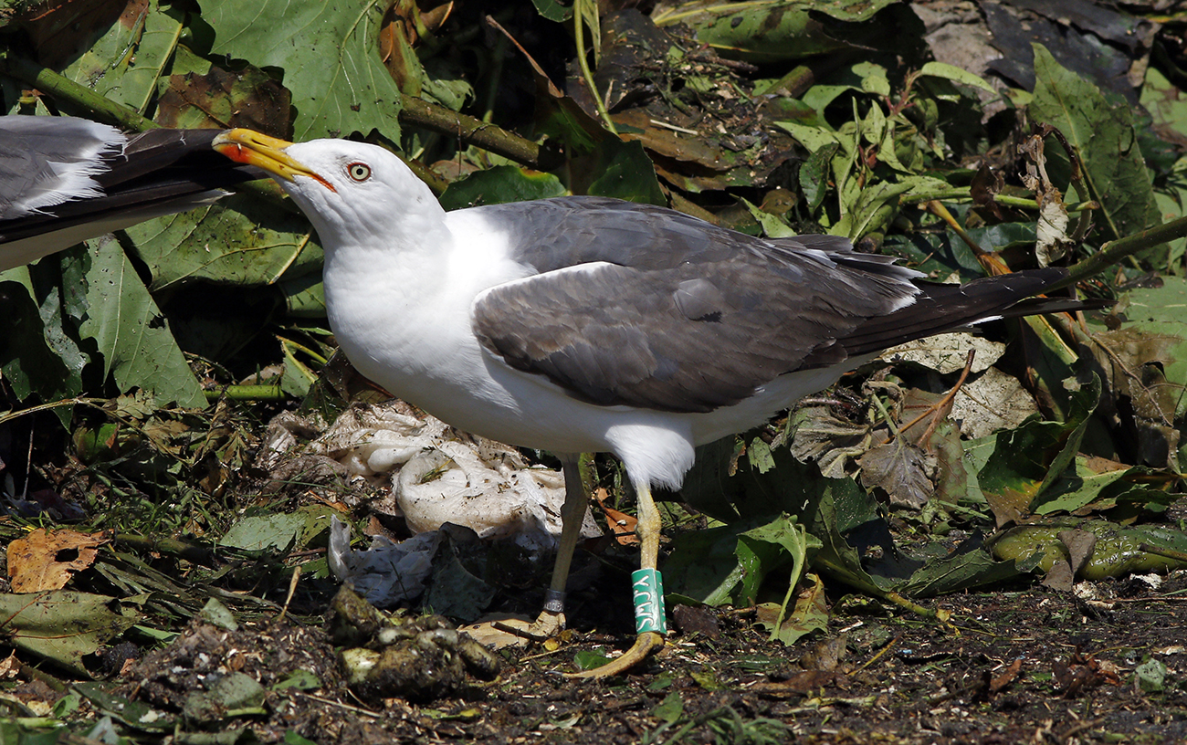 below: Lesser Black-backed Gull (graellsii) Y.CWS 5CY, August 09 2023, Almere - De Vaart, the Netherlands. Picture: Mars Muusse.