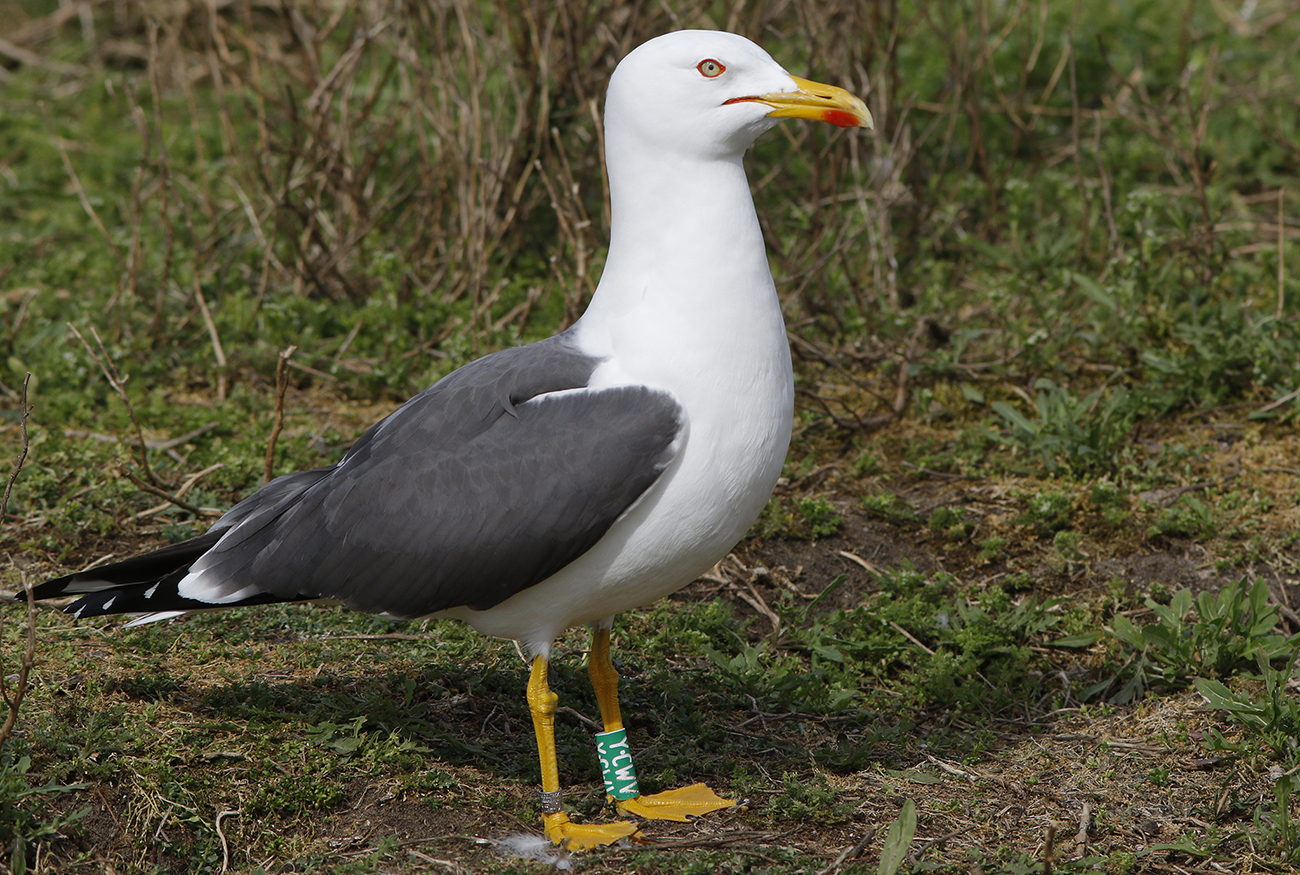 below: Lesser Black-backed Gull (graellsii) Y.CWV 3CY, Mazy 18 2021, IJmuiden, the Netherlands. Picture: Maarten van Kleinwee.