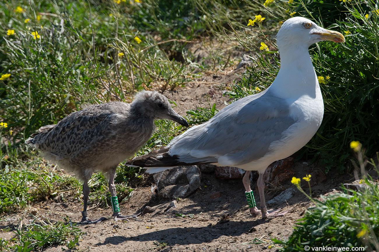 Herring Gull (argenteus) Y.CWZ 1CY, IJmuiden, the Netherlands.Ringed as pullus in breeding season 2019 at Forteiland, IJmuiden. Ringed by Fred Cottaar ringing team. below: Herring Gull (argenteus) Y.CWZ 1CY, July 05 2019, IJmuiden, the Netherlands. Picture: Maarten van Kleinwee.