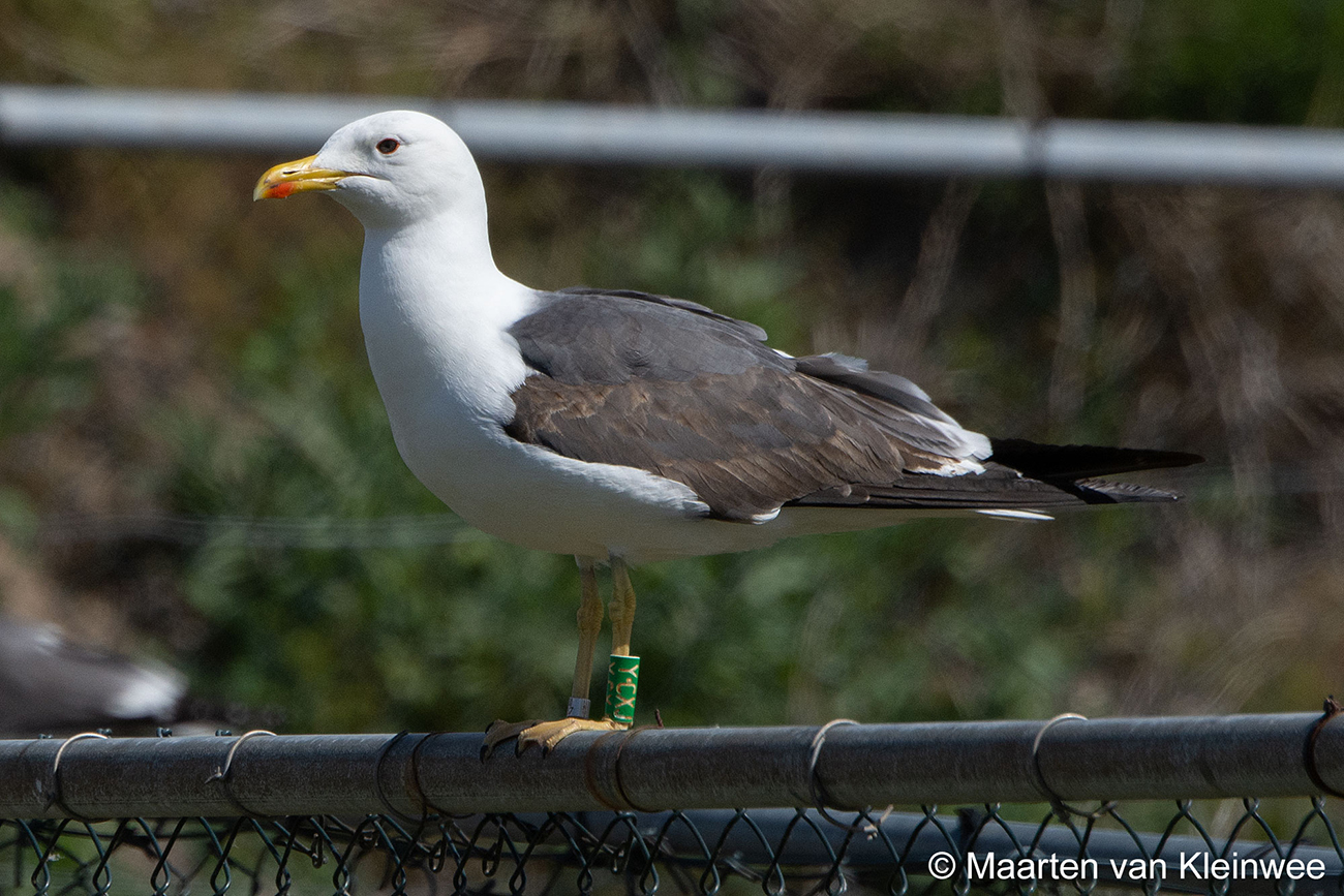below: Lesser Black-backed Gull (graellsii) Y.CXJ 1CY, July 08 2019, IJmuiden, the Netherlands. Picture: Maarten van Kleinwee.