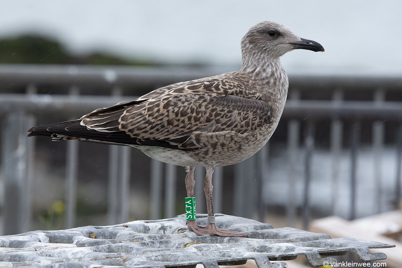 Lesser Black-backed Gull (graellsii) Y.CXS 1CY, July 15 2019, IJmuiden, the Netherlands. Picture: Maarten van Kleinwee.Ringed as pullus in breeding season 2019 at Forteiland, IJmuiden. Ringed by Fred Cottaar ringing team. Last observation: year 2019. below: Lesser Black-backed Gull (graellsii) Y.CXS 1CY, July 15 2019, IJmuiden, the Netherlands. Picture: Maarten van Kleinwee.