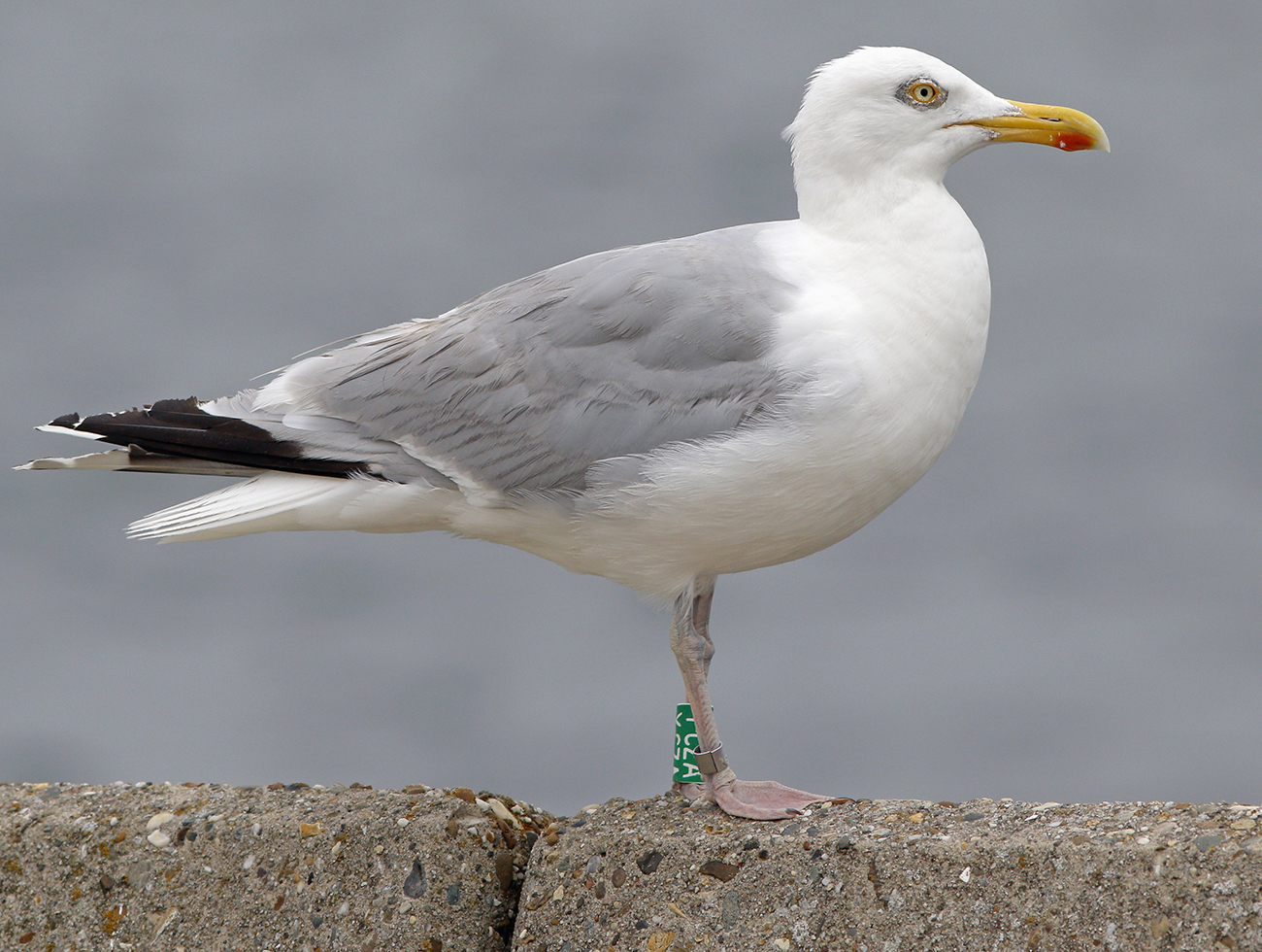below: Herring Gull (argenteus) Y.CZA 4CY, March 04 2022, IJmuiden, the Netherlands. Picture: Mars Muusse.