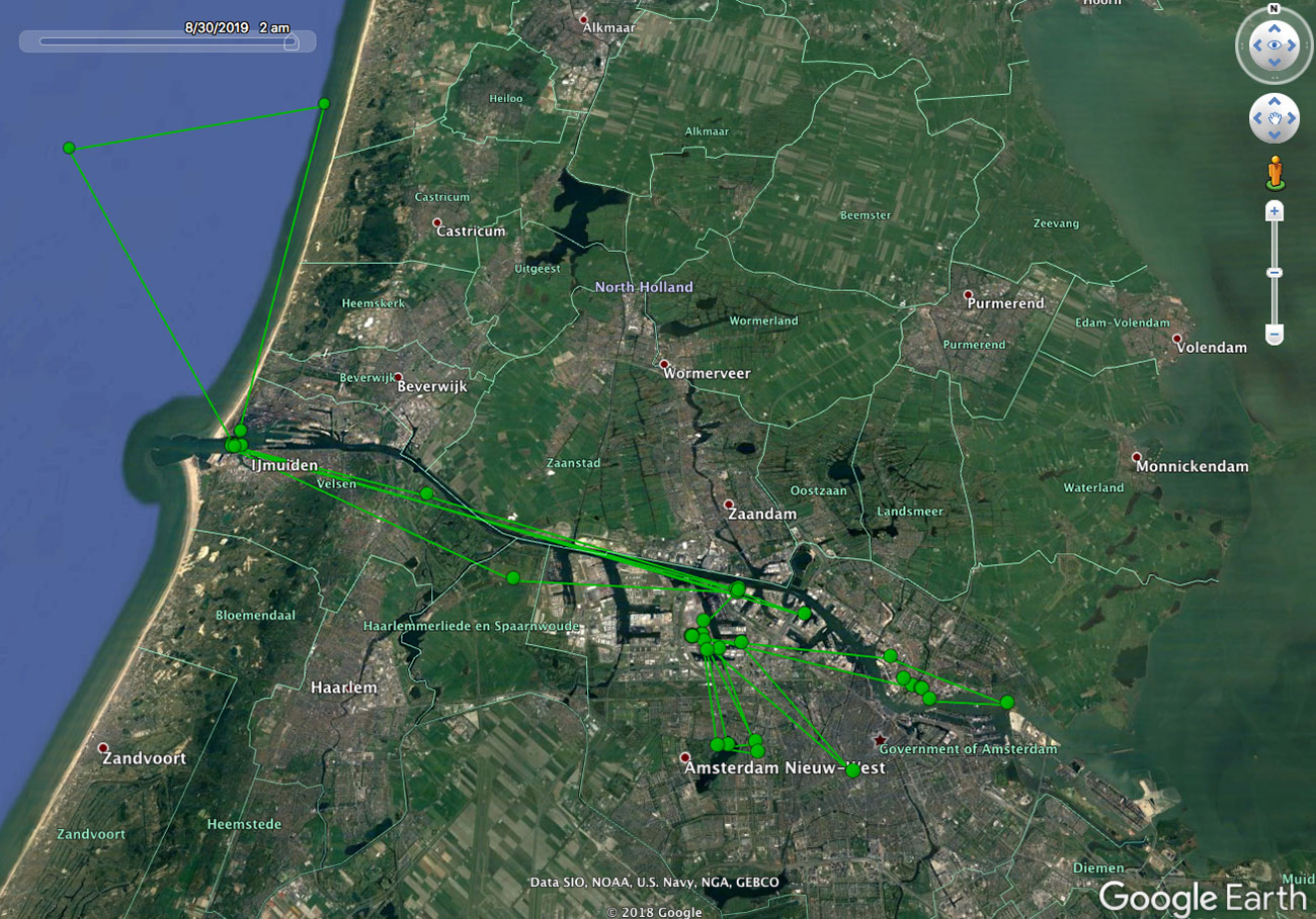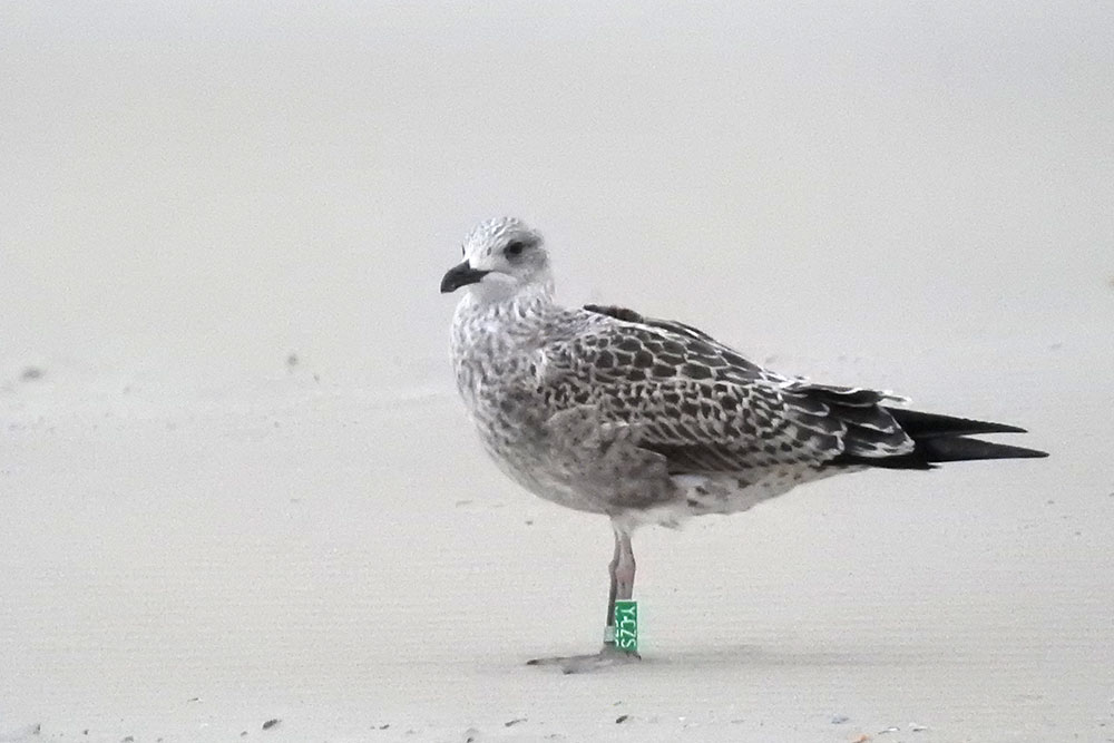 below: Lesser Black-backed Gull (graellsii) Y.CZS 1CY, August 06-08 2019, North Sea, the Netherlands. Picture: Uva BITS.