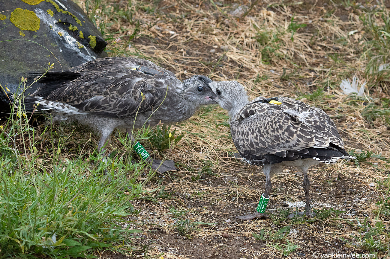 Lesser Black-backed Gull (graellsii) Y.CZS 1CY, 2019, IJmuiden, the Netherlands. Picture: Maarten van Kleinwee.Ringed as pullus in breeding season 2019 at Forteiland, IJmuiden.