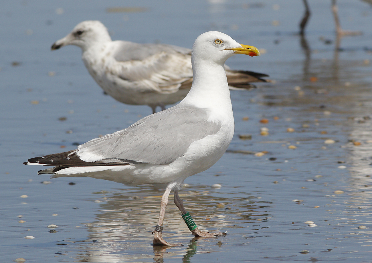 below: Herring Gull (argenteus) Y.DHZ >6CY, August 07 2023, IJmuiden, the Netherlands. Picture: Mars Muusse.