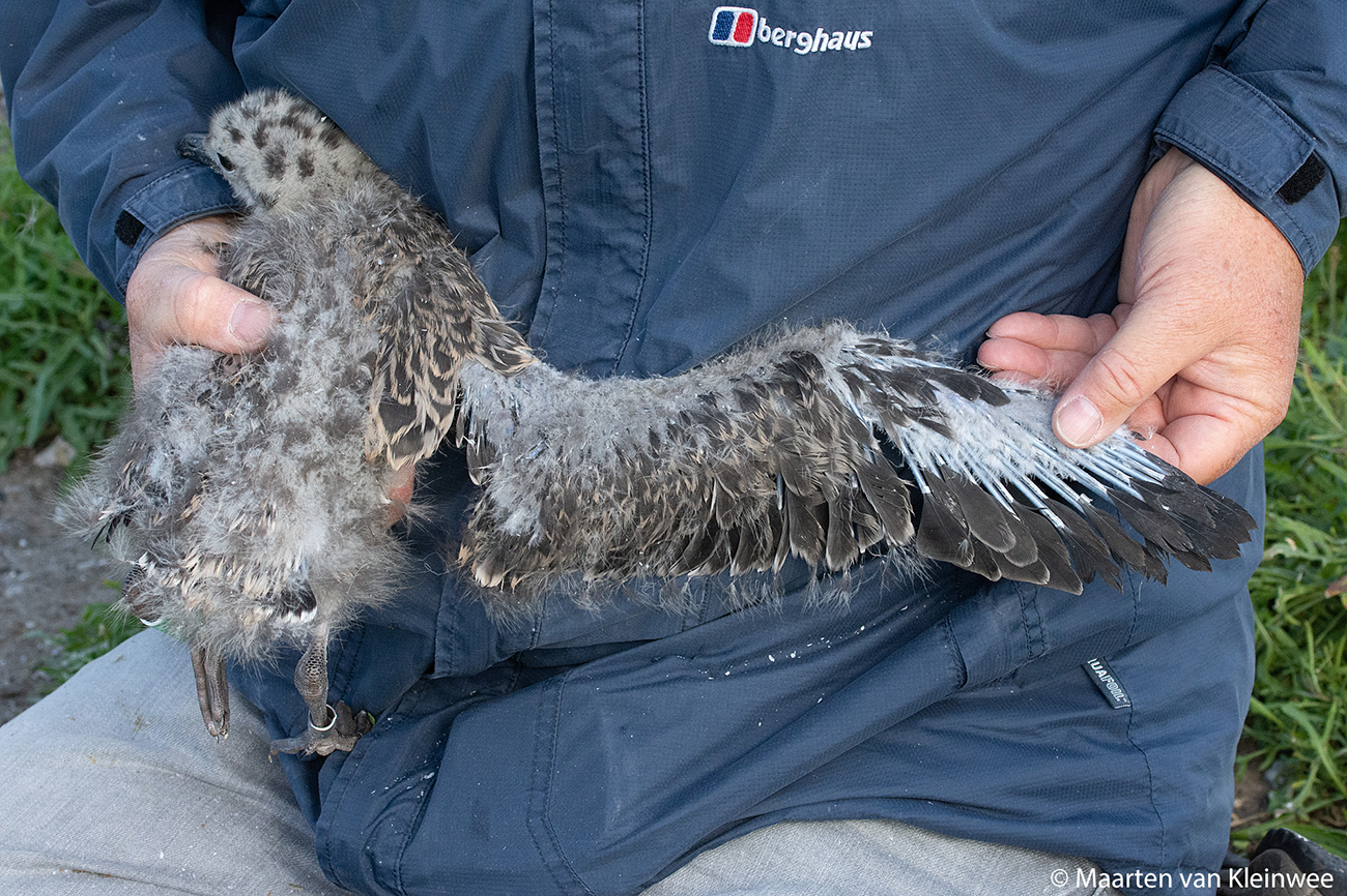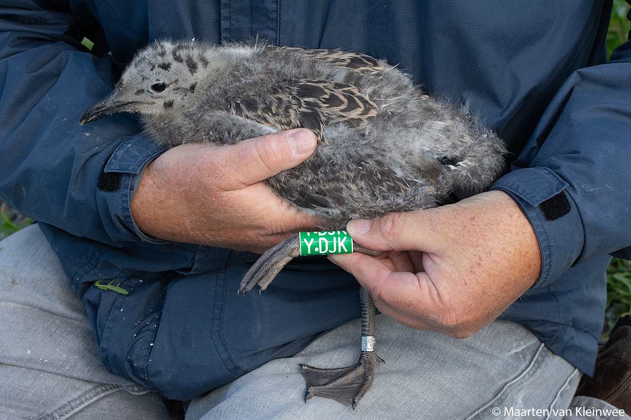 Lesser Black-backed Gull (graellsii) Y.DJK 1CY, June 2021, IJmuiden, the Netherlands. Picture: IJmuiden ringing team.Ringed as pullus in breeding season 2021 at Forteiland, IJmuiden. Ringed by Fred Cottaar ringing team. Last observation: year 2021. below: Lesser Black-backed Gull (graellsii) Y.DJK 1CY, June 24 2021, IJmuiden, the Netherlands. Picture: Maarten van Kleinwee.