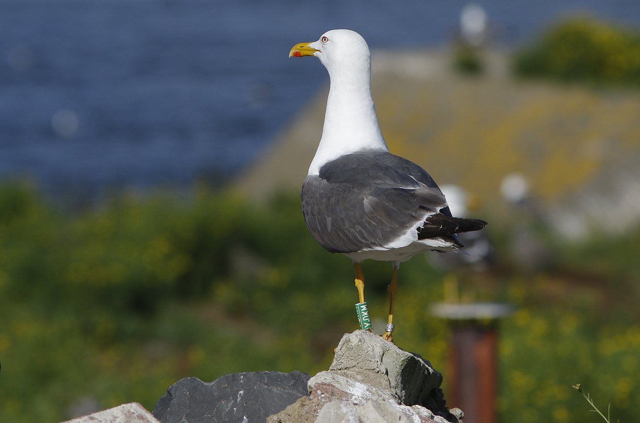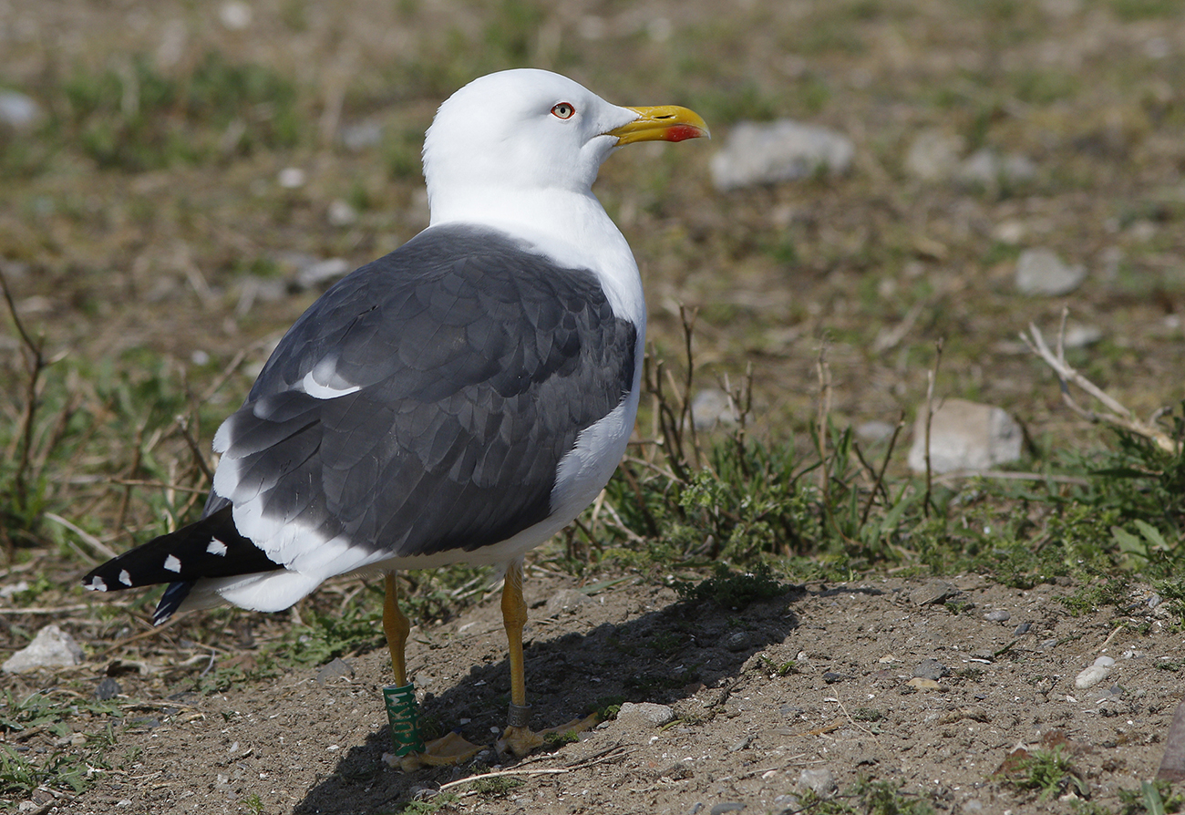 below: Lesser Black-backed Gull (graellsii) Y.DKM 5CY, April 25 2025, IJmuiden, the Netherlands. Picture: Mars Muusse.