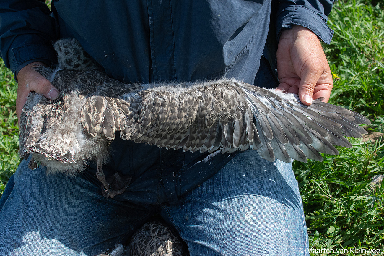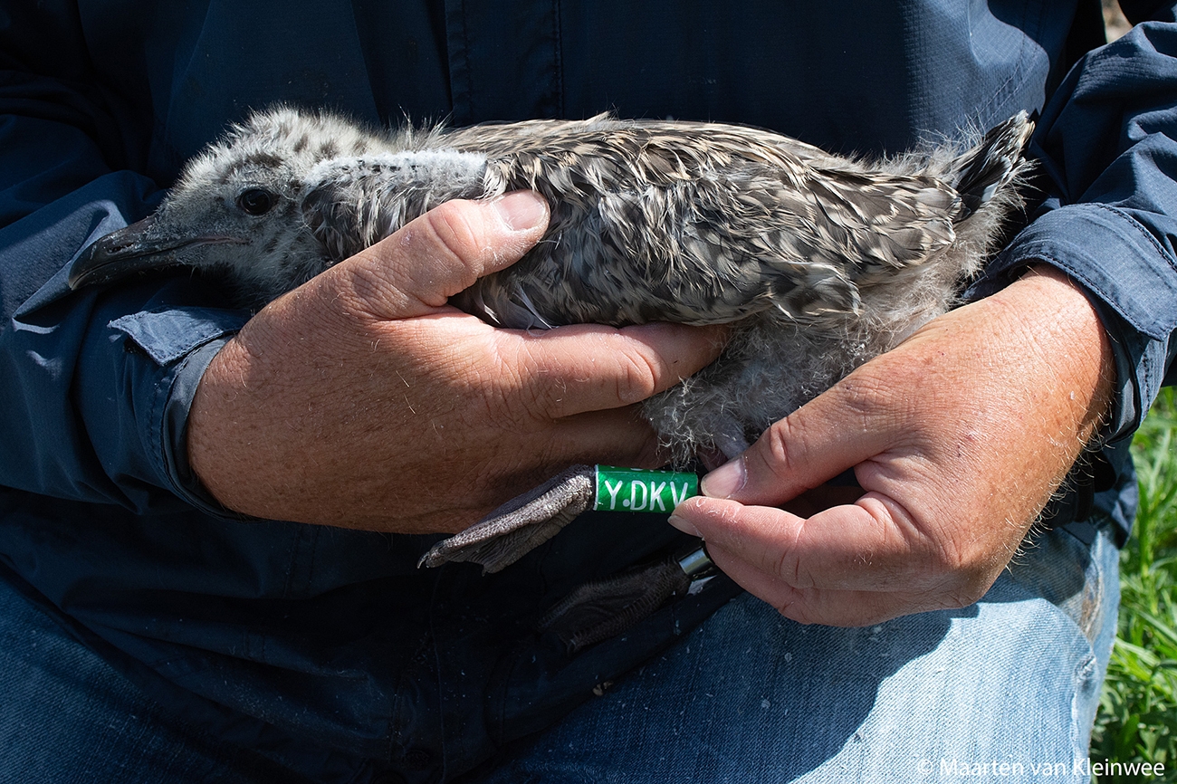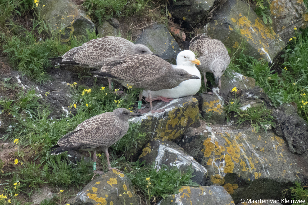 below: Herring Gull (argenteus) Y.DKV 1CY, June 28 2021, IJmuiden, the Netherlands. Picture: Maarten van Kleinwee.