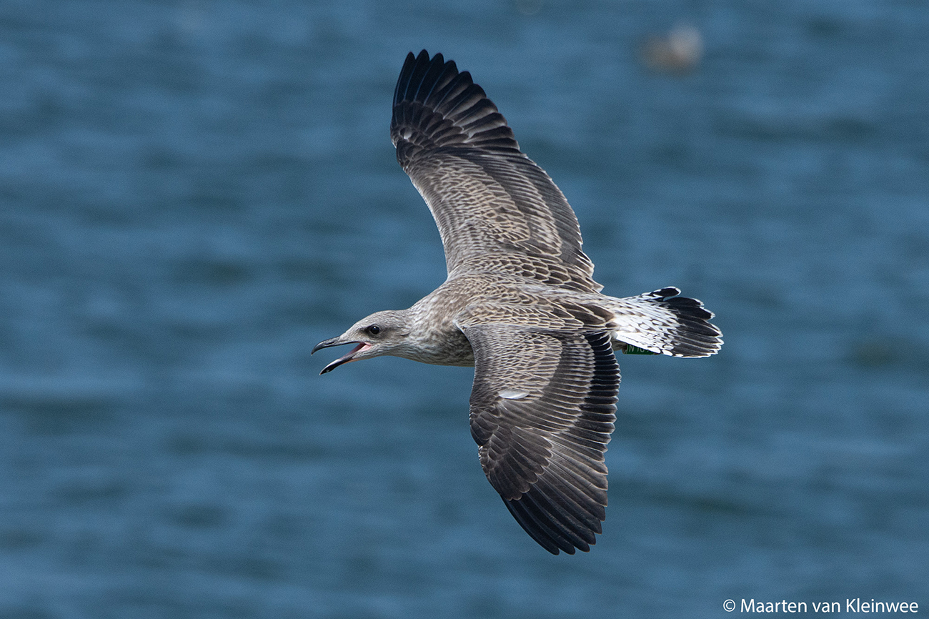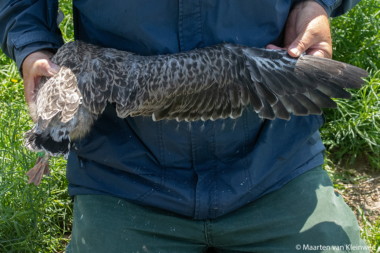 below: Lesser Black-backed Gull (graellsii) Y.DLN 1CY, July 02 2021, IJmuiden, the Netherlands. Picture: Maarten van Kleinwee.
