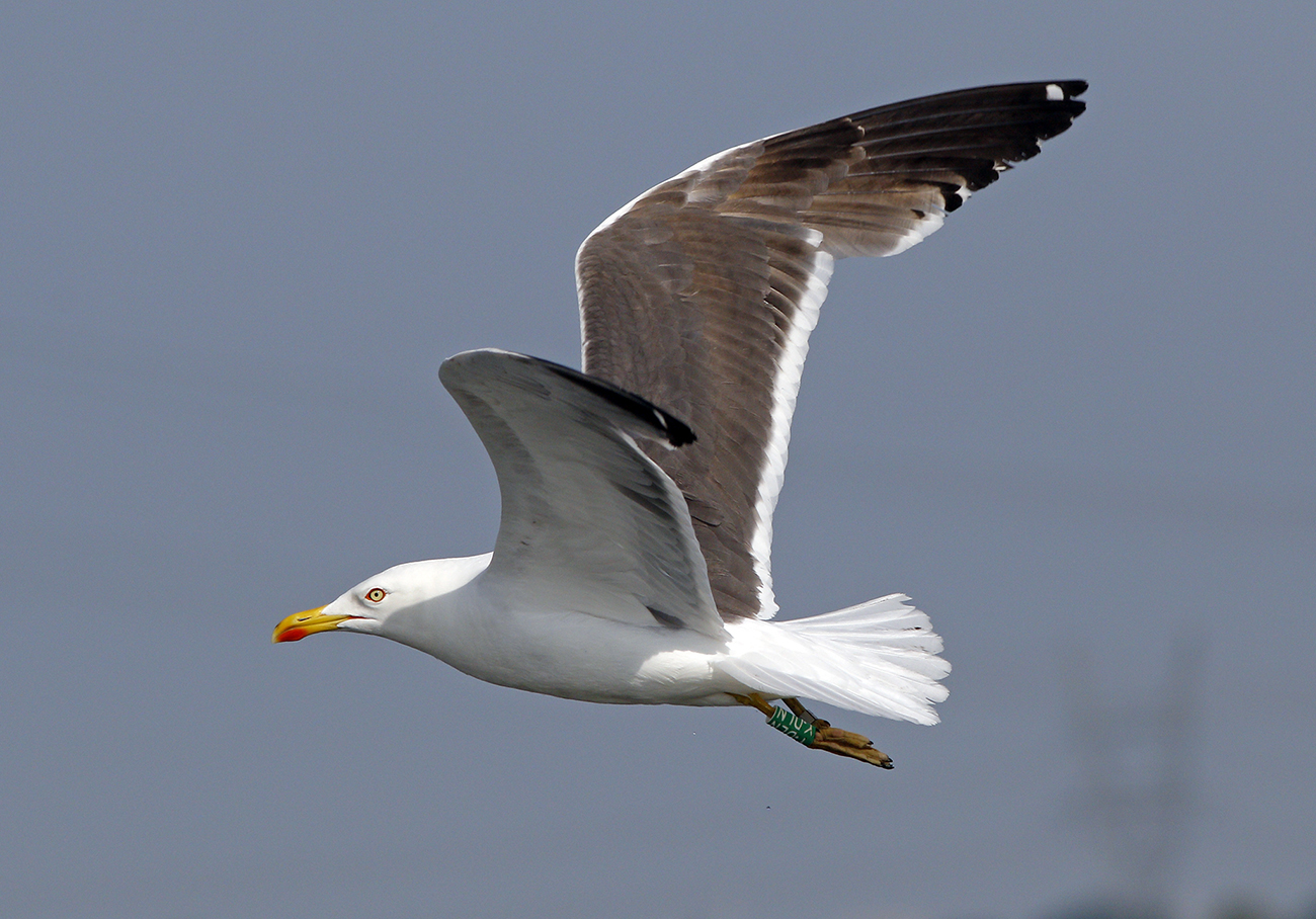 Lesser Black-backed Gull (graellsii) Y.DLN 1CY-5CY, 2021-2025, the Netherlands. Picture: IJmuiden ringing team.Ringed as pullus in breeding season 2021 at Forteiland, IJmuiden. Ringed by Fred Cottaar ringing team. below: Lesser Black-backed Gull (graellsii) Y.DLN 5CY, June 18 2025, IJburg-Amsterdam, the Netherlands. Picture: Mars Muusse.