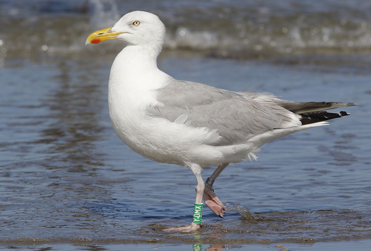 below: Herring Gull (argenteus) Y.DMX 3CY, August 20 2023, IJmuiden, the Netherlands. Picture: Mars Muusse.