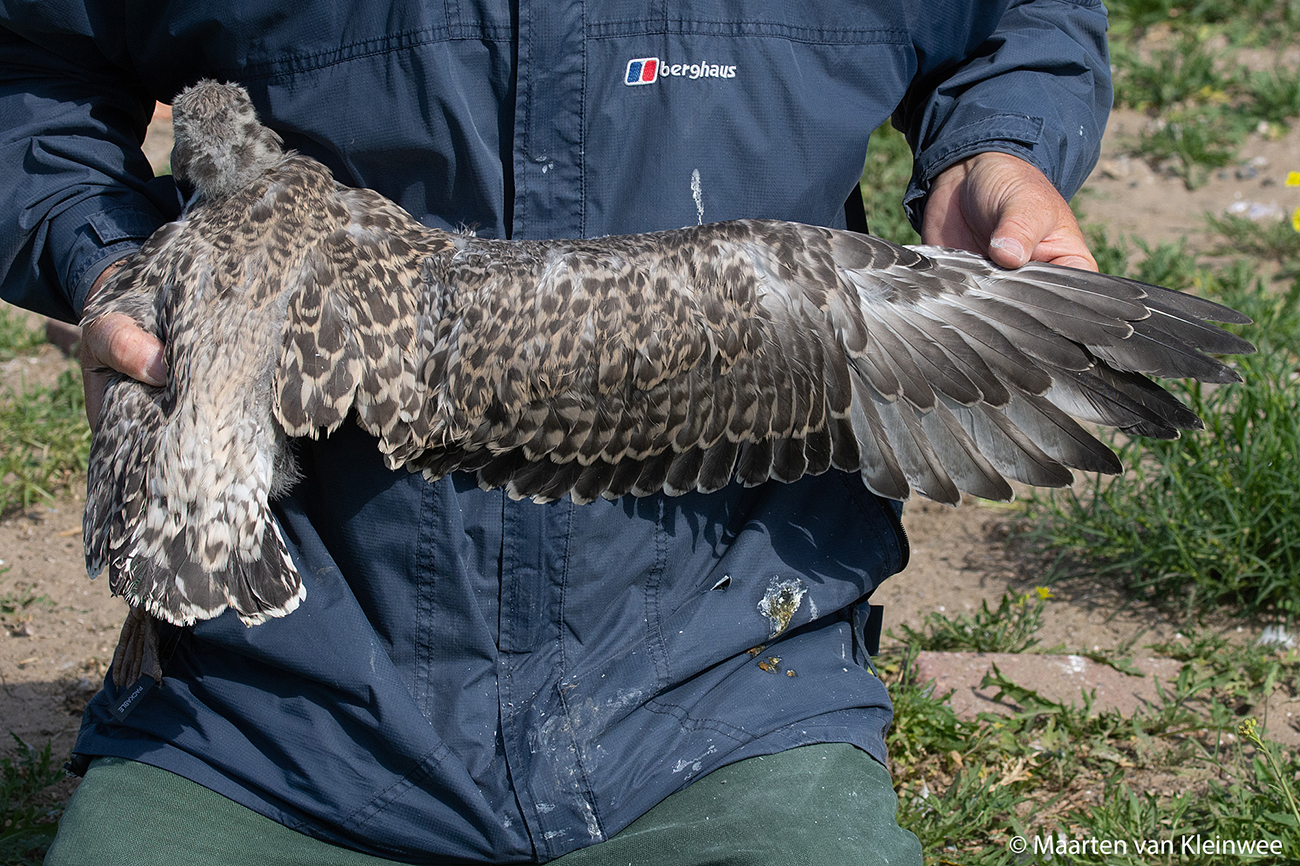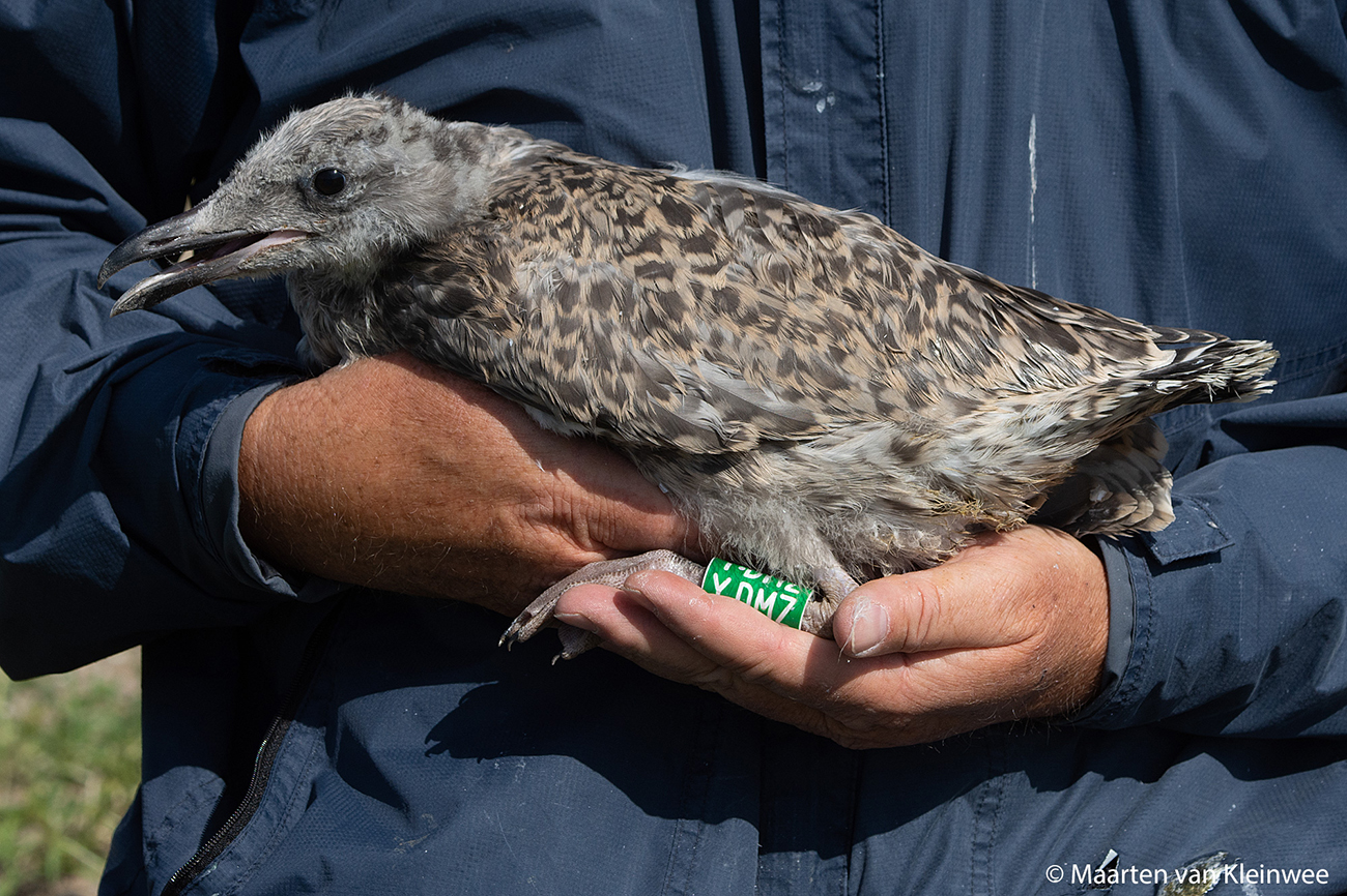 Herring Gull (argenteus) Y.DMZ 1CY, 2021, IJmuiden, the Netherlands. Picture: Maarten van Kleinwee.Ringed as pullus in breeding season 2021 at Forteiland, IJmuiden. Ringed by Fred Cottaar ringing team. Last observation: season 2021. below: Herring Gull (argenteus) Y.DMZ 1CY, July 05 2021, colony Forteiland - IJmuiden, the Netherlands. Picture: Maarten van Kleinwee.