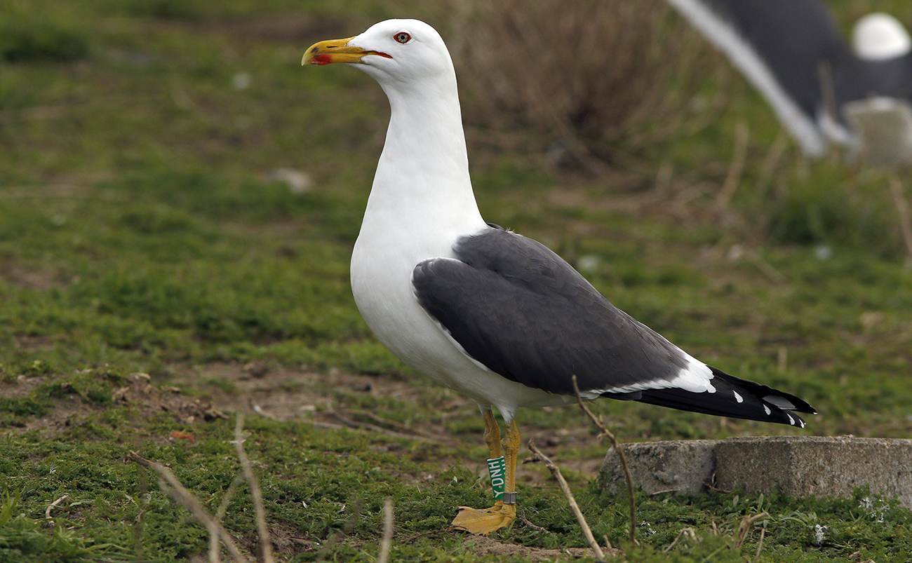 below: Lesser Black-backed Gull (graellsii) Y.DNH >15CY, May 2023, IJmuiden, the Netherlands. Picture: UvA BITS.