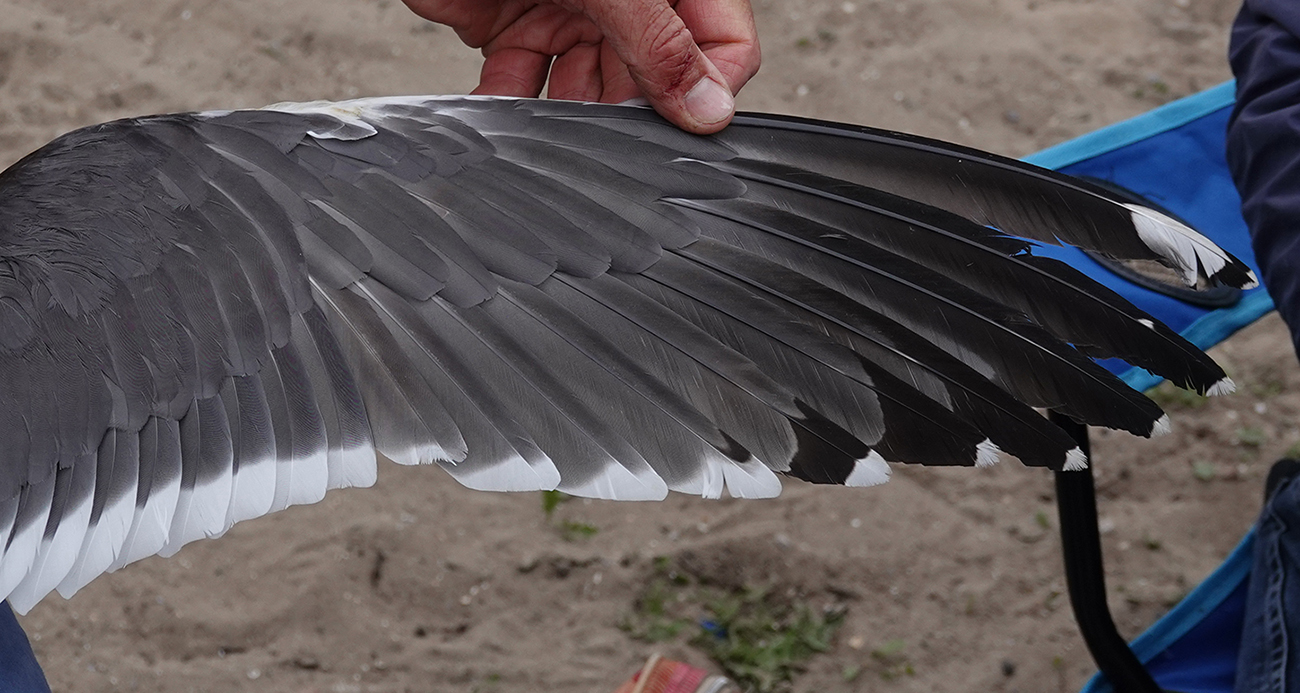 Lesser Black-backed Gull (graellsii) Y.DXT adult, May 2025, IJmuiden, the Netherlands. Picture: IJmuiden Ringing Team.Ringed as breeding adult in season 2025 at Forteiland, IJmuiden. Ringed by Fred Cottaar ringing team. below: Lesser Black-backed Gull (graellsii) Y.DXT >4CY, May 06 2025, IJmuiden, the Netherlands. Picture: IJmuiden Ringing Team.Nest with 3 eggs. |