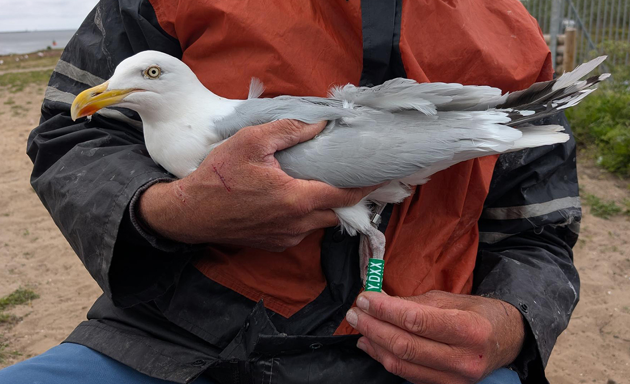 Herring Gull (argenteus) Y.DXX adult, May 2025, IJmuiden, the Netherlands. Picture: IJmuiden Ringing Team.Ringed as breeding adult in season 2025 at Forteiland, IJmuiden. Ringed by Fred Cottaar ringing team. below: Herring Gull (argenteus) Y.DXX >4CY, May 06 2025, IJmuiden, the Netherlands. Picture: IJmuiden Ringing Team.Trapped on nest with 3 eggs.