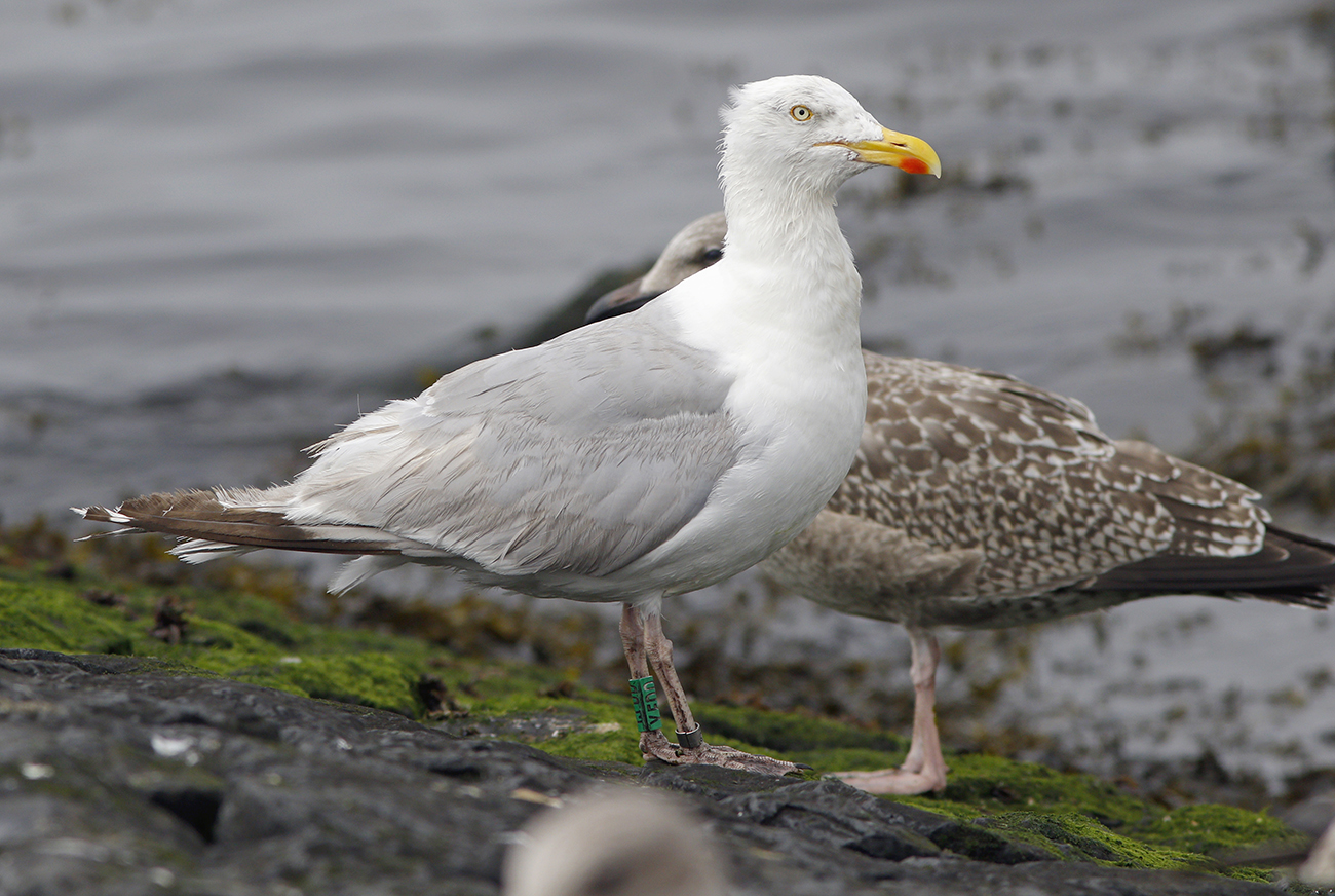 Herring Gull (argenteus) Y.FDD adult, 2025, IJmuiden, the Netherlands. Picture: IJmuiden Ringing Team.Ringed as breeding adult in season 2025 at Forteiland, IJmuiden. Ringed by Fred Cottaar ringing team. below: Herring Gull (argenteus) Y.FDD >4CY, August 13 2025, IJmuiden, the Netherlands. Picture: Mars Muusse.