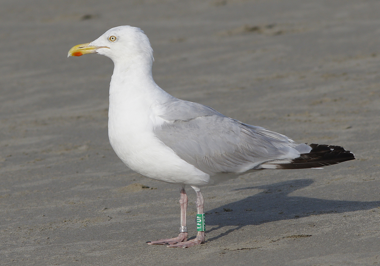 Herring Gull (argenteus) Y.FDF adult, May 2025, IJmuiden, the Netherlands. Picture: IJmuiden Ringing Team.Ringed as breeding adult in season 2025 at Forteiland, IJmuiden. Ringed by Fred Cottaar ringing team. below: Herring Gull (argenteus) Y.FDF >4CY, August 07 2025, IJmuiden, the Netherlands. Picture: Mars Muusse.