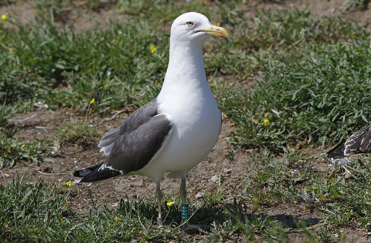 Lesser Black-backed Gull (graellsii) Y.FFF adult, 2025, IJmuiden, the Netherlands. Picture: IJmuiden Ringing Team.Ringed as breeding adult in season 2025 at Forteiland, IJmuiden. Ringed by Fred Cottaar ringing team. below: Lesser Black-backed Gull (graellsii) Y.FFF >4CY, July 11 2025, IJmuiden, the Netherlands. Picture: IJmuiden Ringing Team.