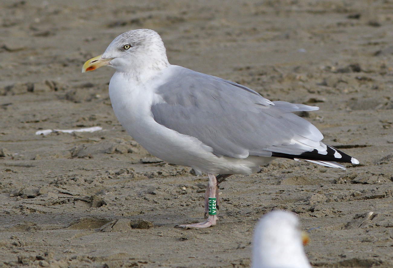Herring Gull (argenteus) Y.FFK adult, 2025, IJmuiden, the Netherlands. Picture: IJmuiden Ringing Team.Ringed as breeding adult in season 2025 at Forteiland, IJmuiden. Ringed by Fred Cottaar ringing team. below: Herring Gull (argenteus) Y.FFK >4CY, September 30 2025, IJmuiden, the Netherlands. Picture: IJmuiden Ringing Team.