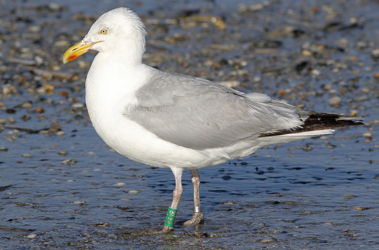 Herring Gull (argenteus)Gull (argenteus) Y.FJR (was Y.CUB) adult, 2022 - 2025, IJmuiden, the Netherlands. Picture: Mars Muusse.Ringed as breeding adult in season 2019 at Forteiland, IJmuiden.