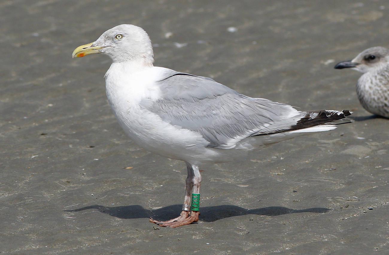 Herring Gull (argenteus) Y.FKK adult, 2025, IJmuiden, the Netherlands. Picture: IJmuiden Ringing Team.Ringed as breeding adult in season 2025 at Forteiland, IJmuiden. Ringed by Fred Cottaar ringing team. below: Herring Gull (argenteus) Y.FKK adult, August 09 2025, IJmuiden, the Netherlands. Picture: Mars Muusse.