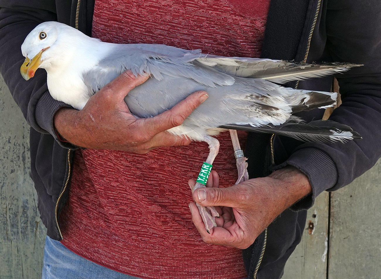 Herring Gull (argenteus) Y.FKR 4CY, 2025, IJmuiden, the Netherlands. Picture: IJmuiden Ringing Team.Ringed as breeding adult in season 2025 at Forteiland, IJmuiden. Ringed by Fred Cottaar ringing team. below: Herring Gull (argenteus) Y.FKR 4CY, July 29 2025, IJmuiden, the Netherlands. Picture: IJmuiden Ringing Team.